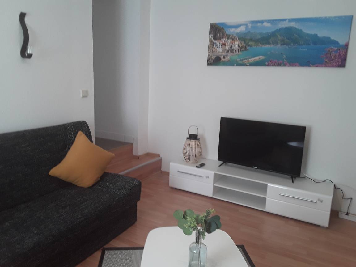 Sie bexteht aus einer Küche,einem Wohnzimmer und einem Schlafzimmer sowie Badezimmer mit WC,Waschtisch und Eckdusche.