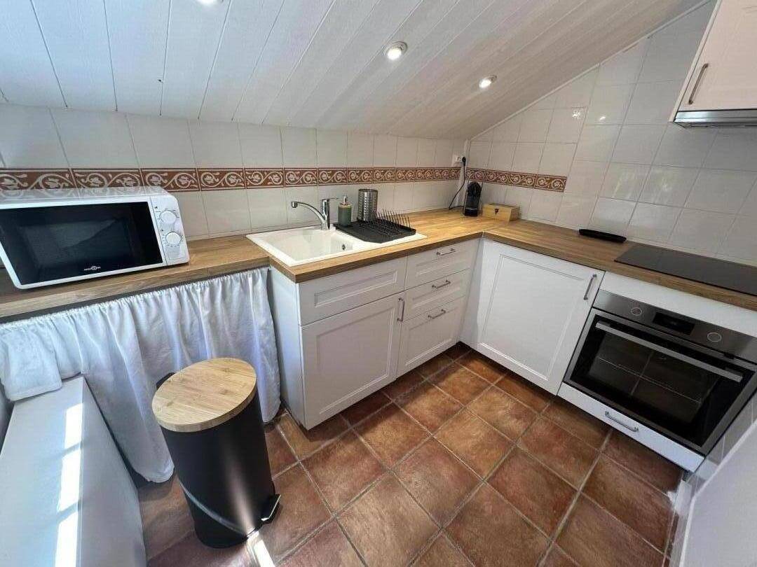 – eine Küche (Backofen, Mikrowelle, 4-Flammen-Induktionskochfeld, Dunstabzugshaube)