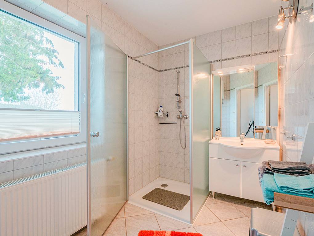Haus: Gepflegtes Haus mit einer Ferienwohnung mit überdachter Terrasse, 2021 neu renoviert. Moderne, geschmackvolle Einrichtung. Gemütliches Ambiente mit holzbefeuertem Kachelofen. Internet über W-Lan. Waschmaschine. Gas-Zentralheizung. Schöner, naturbelassener Garten mit altem Baumbestand. Große, überdachte Terrasse mit Sitz- und Liegemöbeln, Grill. 1 Pkw-Stellplatz vorhanden.