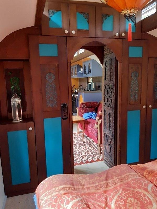Der Zigappo orientale ist mit Fußbodenheizung unter original-marokkanischen Fliesen ausgestattet und bietet auf 22 m² mit Wohnküche, Bad und einem getrenntem Schlafzimmer sowie einem Sommer-Pavillon luxuriösen Urlaub auf kleinem Raum.