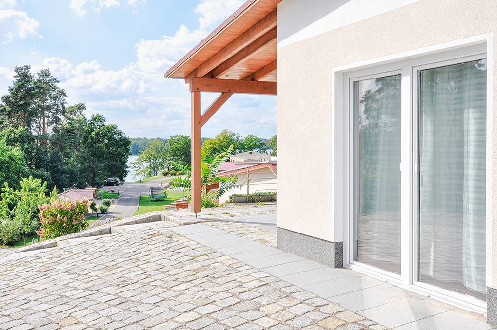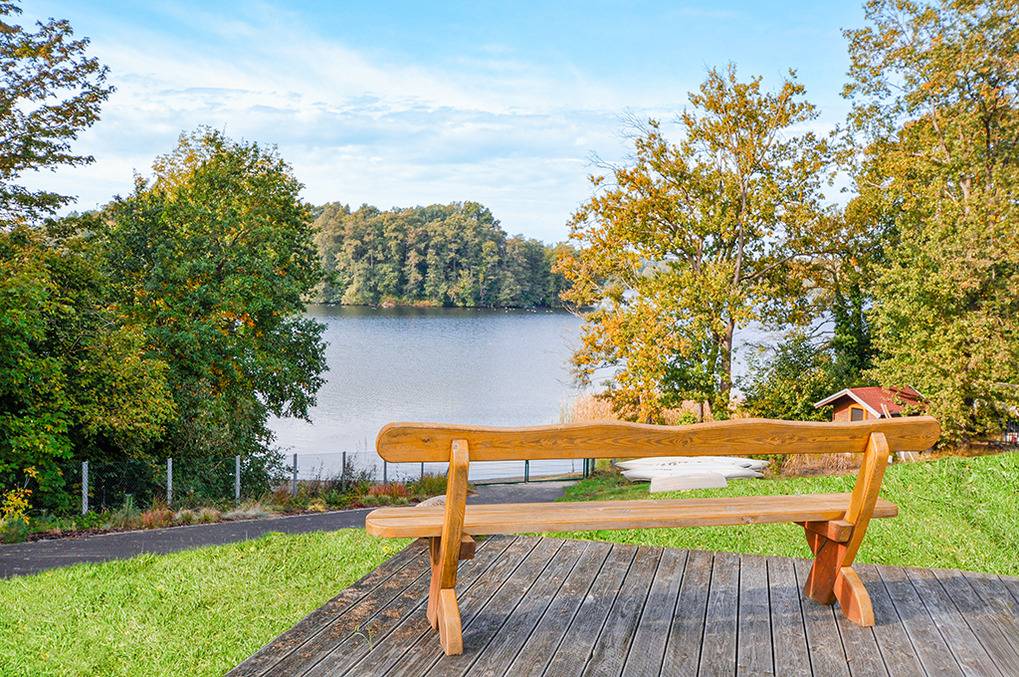 Haus: Schöne, moderne Bungalowanlage mit eigener Badestelle am Großen Lychensee. Kinderspielplatz, Trampolin. Grillplatz. Mehrere Kanus zur freien Verfügung (Gemeinschaftsnutzung). Die 14 Reihenbungalows sind in reizvoller Hanglage erbaut. Geschmackvolle Einrichtung, moderne Komfortausstattung. Jede Einheit mit überdachter Terrasse, Gartenmöbeln, einige mit eingeschränktem Wasserblick. 1 Pkw-Stellplatz pro Haus.