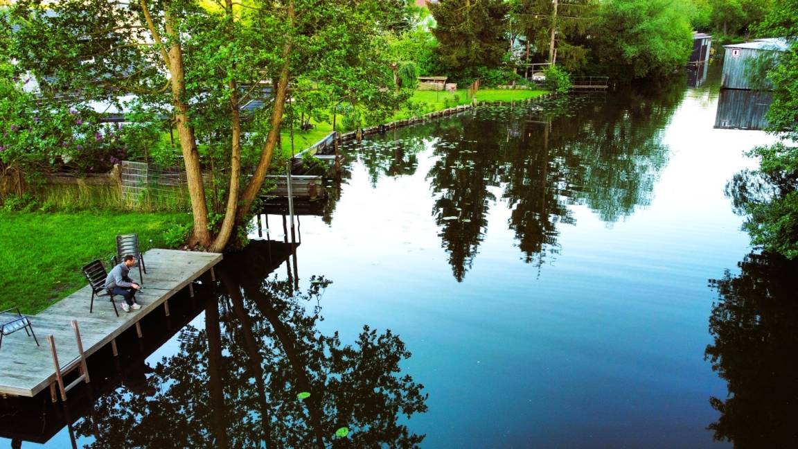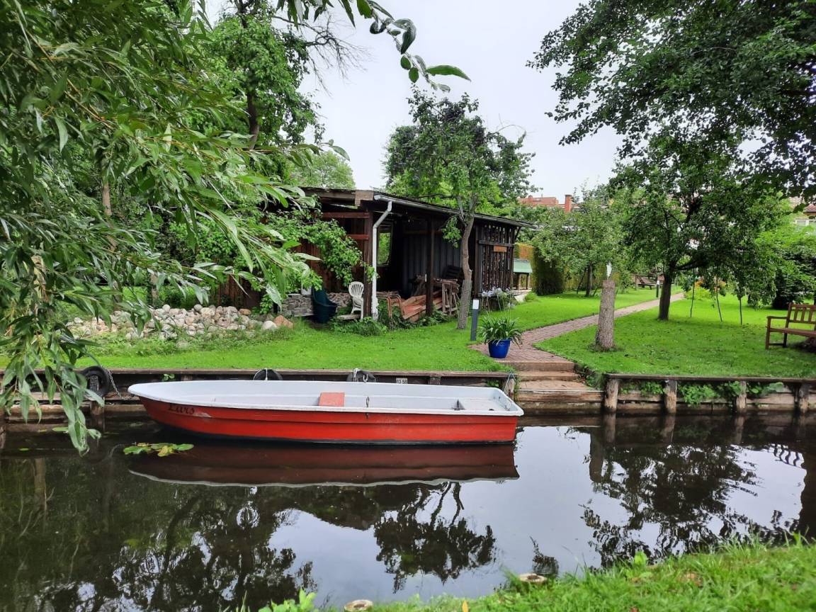 Das Grundstück ist ca. 1.400 m² groß mit ca. 20 lfd. Metern Wasserfront. Ein großer Bootsausstieg lädt zum Bootfahren ein. Ruderboote und Kanus werden in ca. 100 m Entfernung vermietet und können auf dem Wasserweg bis zum Grundstück gefahren werden. Der Garten mit ca. 800 m² Rasenfläche, Obstbäumen und Heckenbepflanzung hat genügend Platz für Sonnenliegen oder zum Spielen für die Kinder.
