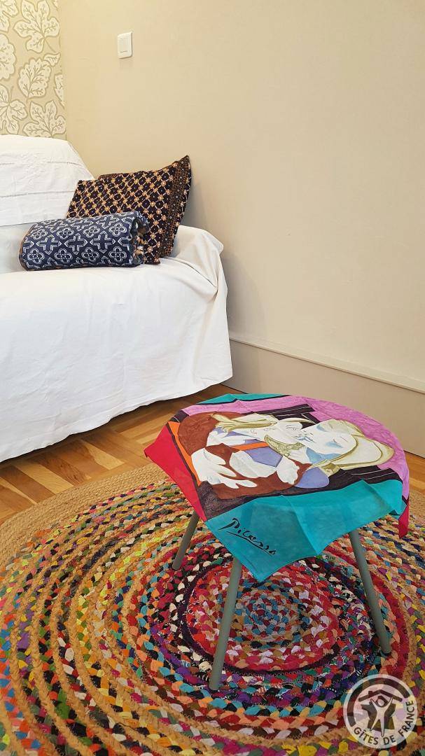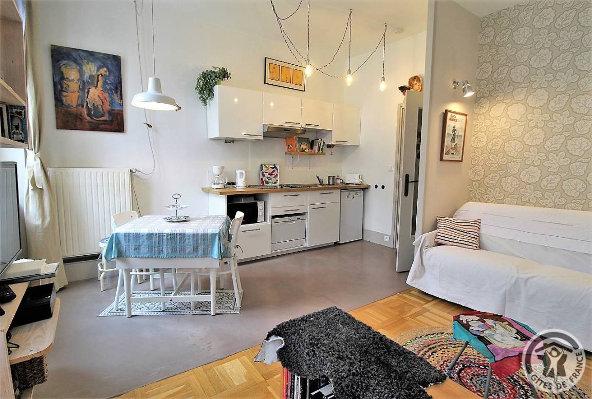 „Fenêtres sur la cour, lumineuse et paisible, c’est aussi un espace intérieur bien pensé, agréablement aménagé, entièrement équipé, décoré avec goût et originalité, parfaitement situé. Il est de même accueillant et des plus sympathique, et cela, c’est tout à fait à l’image de sa propriétaire.“