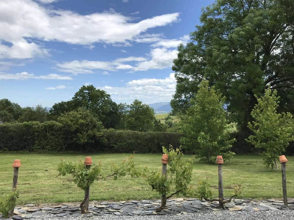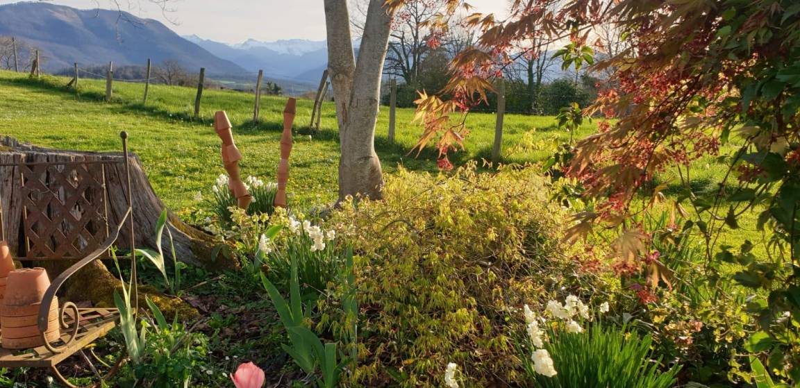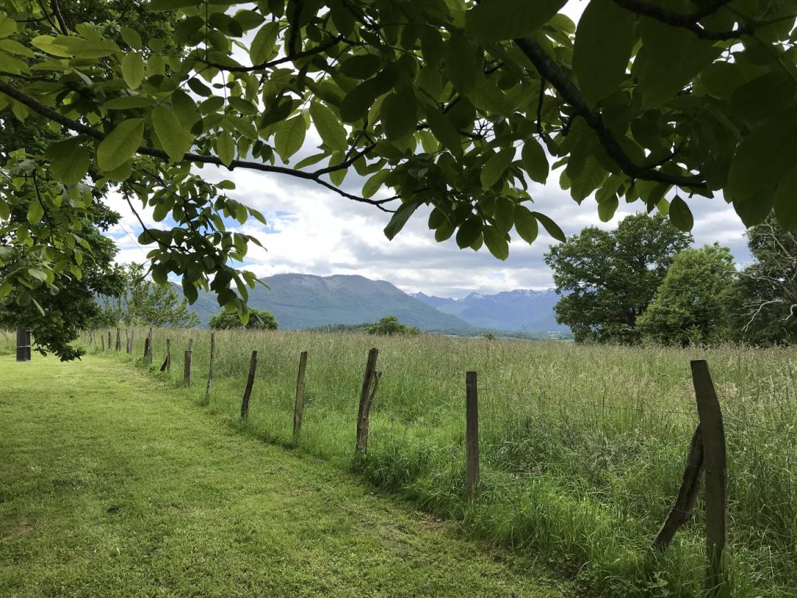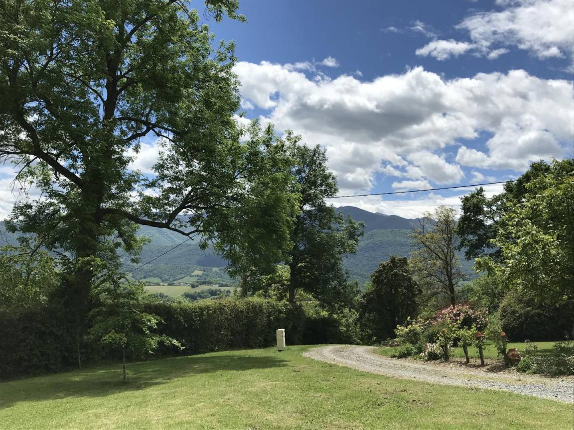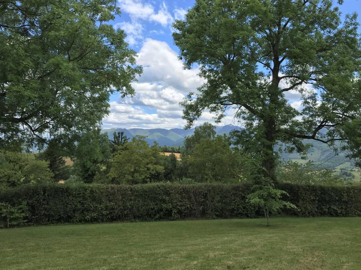 Großes flaches bewaldetes Grundstück mit herrlichem Blick auf die Pyrenäen und die Landschaft, Gartenmöbel, Grill. Tischtennis.