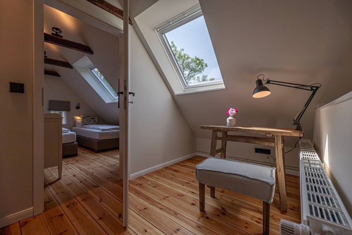 - 2 Schlafzimmer im Obergeschoss (1x Doppelbett (180 x 200 cm) und TV / 2x Einzelbetten (je 90 x 200 cm) und TV)