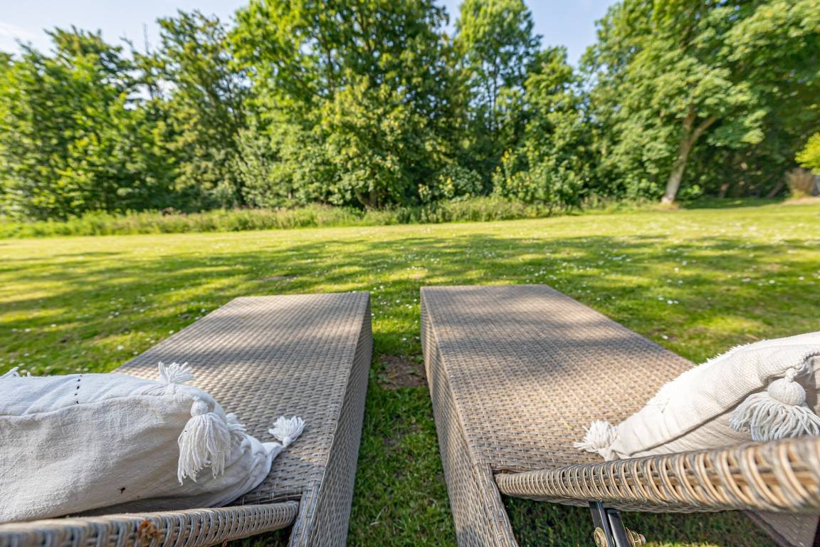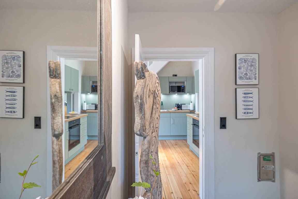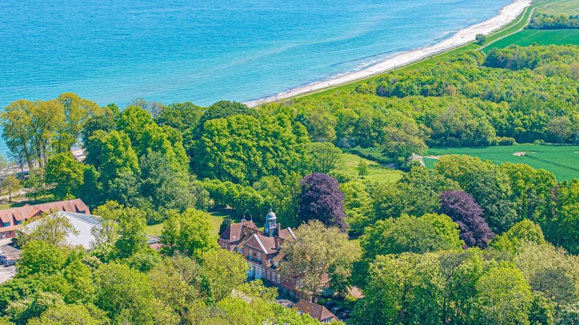 Strandnahe, wunderschöne neue und komfortable Ferienwohnung im ehemaligen Gutsgebäude des Gut Oehe bei Maasholm mit Süd-West-Terrasse, freiem Blick ins Grüne, gehobener Ausstattung und viel Rasen zum Toben und Spielen.