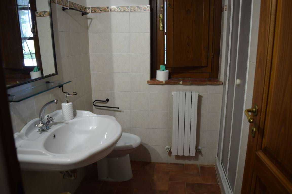 Badezimmer: Waschbecken, WC, Bidet, Dusche, WiFi Internet.