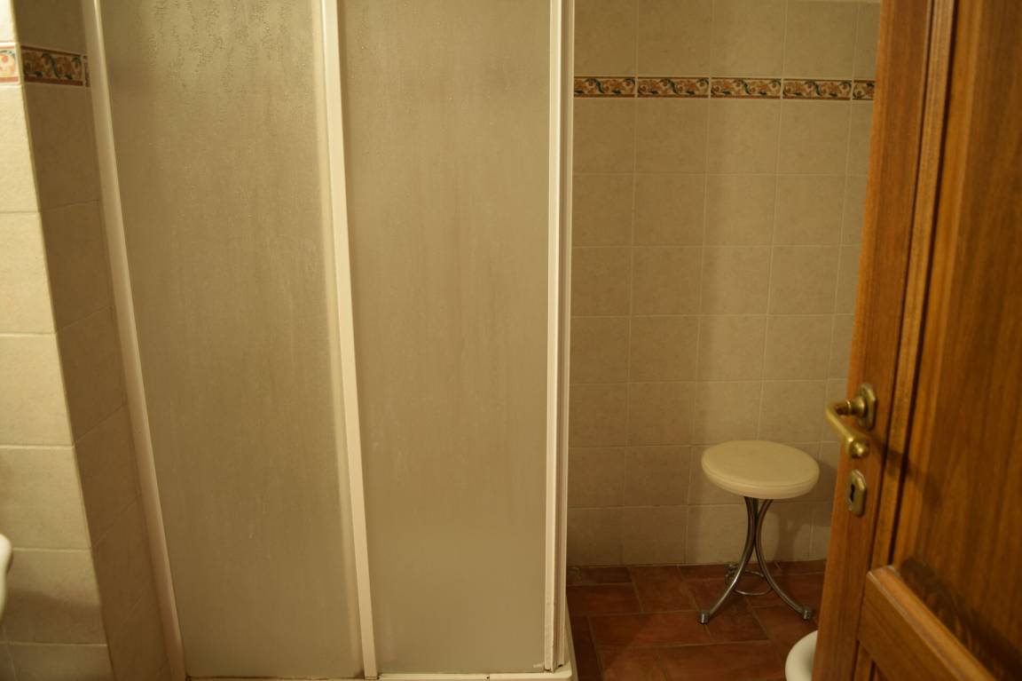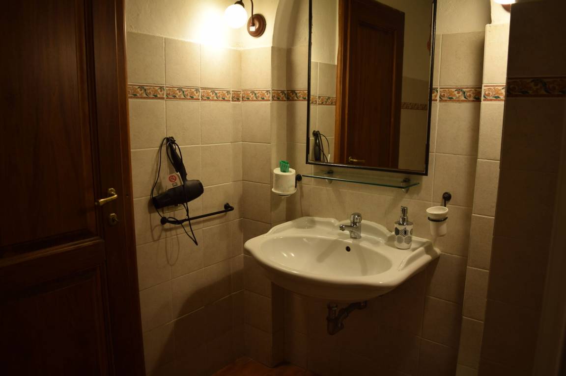 Badezimmer: Waschbecken, WC, Dusche, WiFi Internet.
