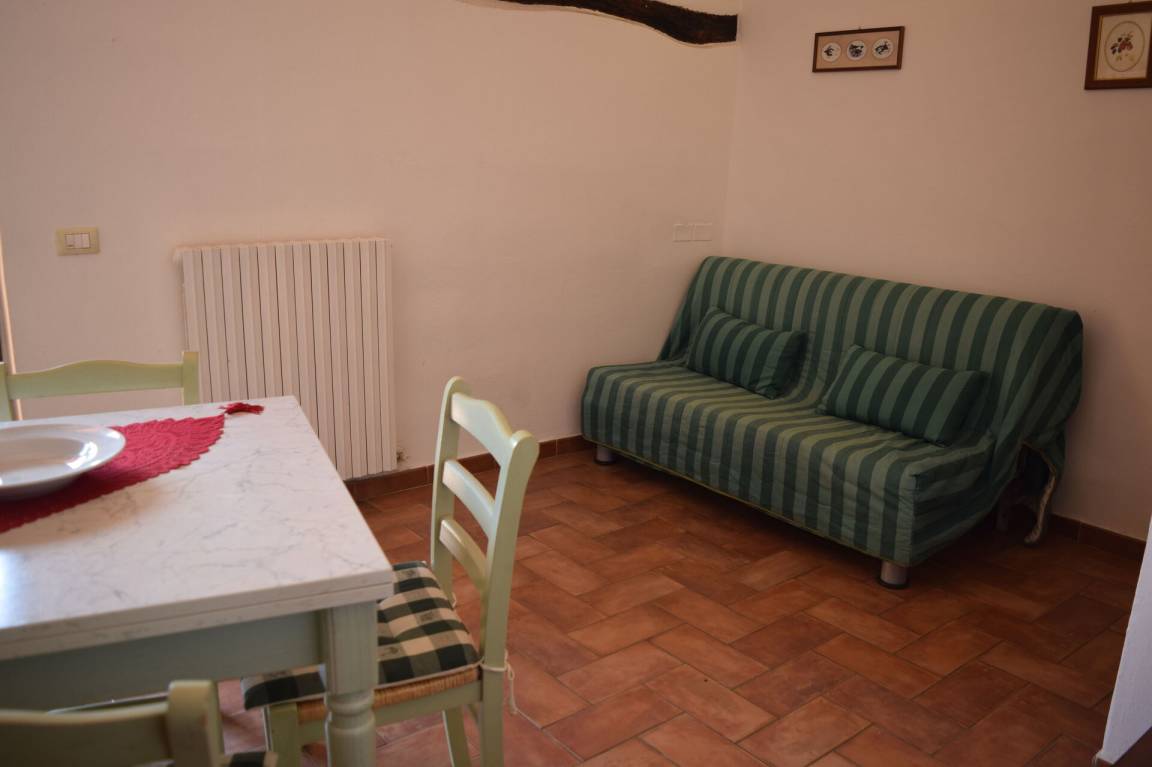 Wohnküche: gut ausgestattete Küche, Esstisch, Kühlschrank, Tiefkühler, Herd, Ofen, Sofa, WiFi Internet.