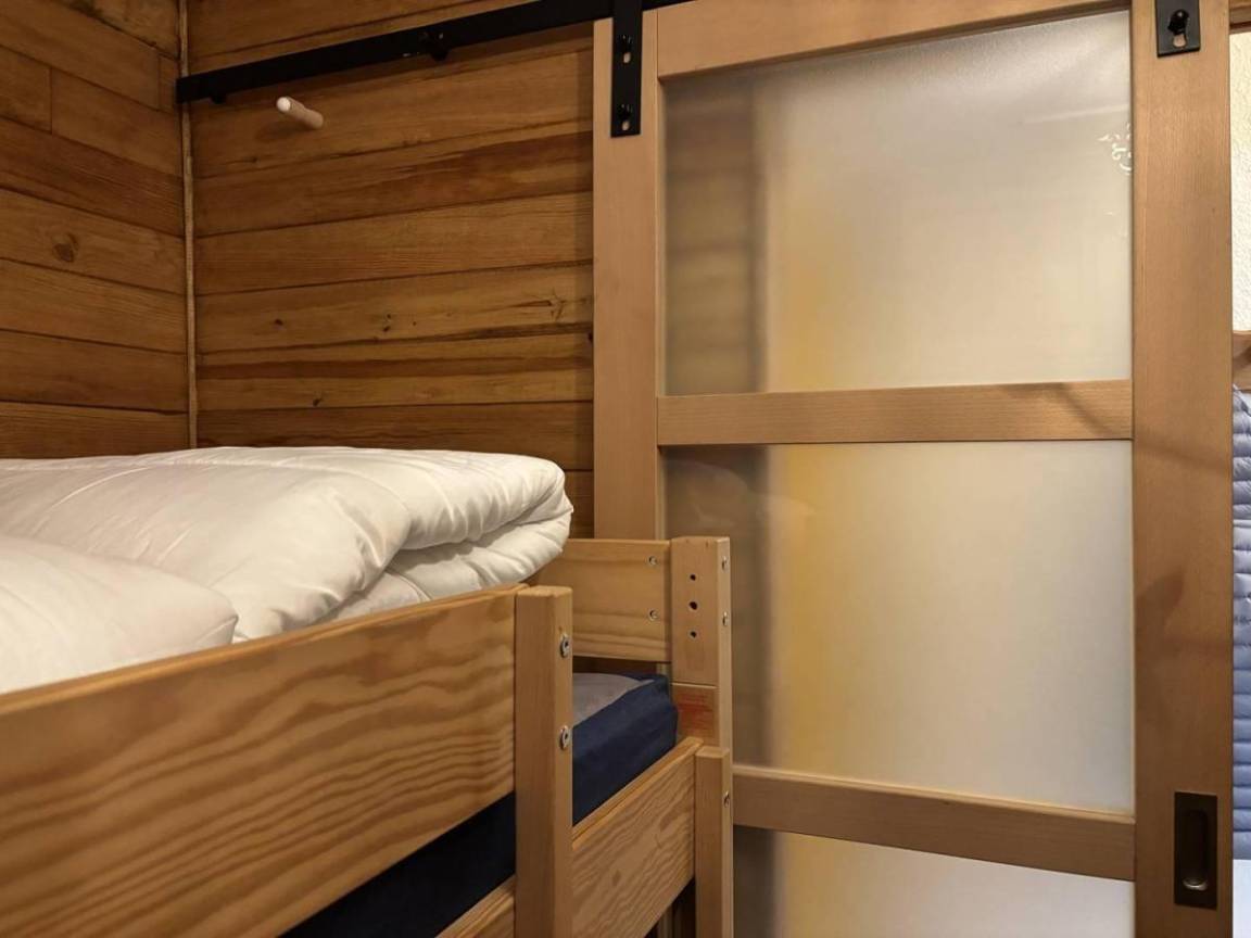 Die Residenz Le France befindet sich in der Station La Plagne in den französischen Nordalpen. Sie ist eine Station Skiern an den Füssen. Sie profitiert von einer außergewöhnlichen Stelle, in der Nähe des Kinderhorts, der Skischule und des Zentrums der Station. Direkter Zugang mit der Innenpassage. Vom Balkon ihrer Wohnung werden Sie eine schöne Sicht auf den Skispisten und dem Montblanc haben. Fläche von ungefähr 23 m². 5te Etage. Orientierung : Süd. Blick skipisten ODER Blick berg. Wohnzimmer mit Sofa, (140). offener Schlafbereich mit 2 Stockbetten. Kochnische mit Kaffeemaschine (Senseo), Backofen, Toaster, 2 Glaskeramikkochfelder, Kühl-Gefrier-Kombination. Badezimmer mit WC. Balkon. Waschmaschine. Die oberen Betten sind nicht für Kinder unter 6 Jahren geeignet.