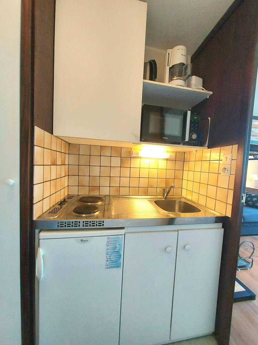 Die Residenz Le France befindet sich in der Station La Plagne in den französischen Nordalpen. Sie ist eine Station Skiern an den Füssen. Sie profitiert von einer außergewöhnlichen Stelle, in der Nähe des Kinderhorts, der Skischule und des Zentrums der Station. Direkter Zugang mit der Innenpassage. Vom Balkon ihrer Wohnung werden Sie eine schöne Sicht auf den Skispisten und dem Montblanc haben. Fläche von ungefähr 17 m². 1te Etage. Orientierung : Nord. Blick berg (Mont-Blanc). Diele. Wohnzimmer mit Klappschlafcouch, Doppel Hochbett, Heizkörper. Küche mit Kaffeemaschine, kleiner Backofen mit Mikrowellenfunktion, Toaster, elektronische Herdplatten, Kühlschrank. Badezimmer. Balkon.