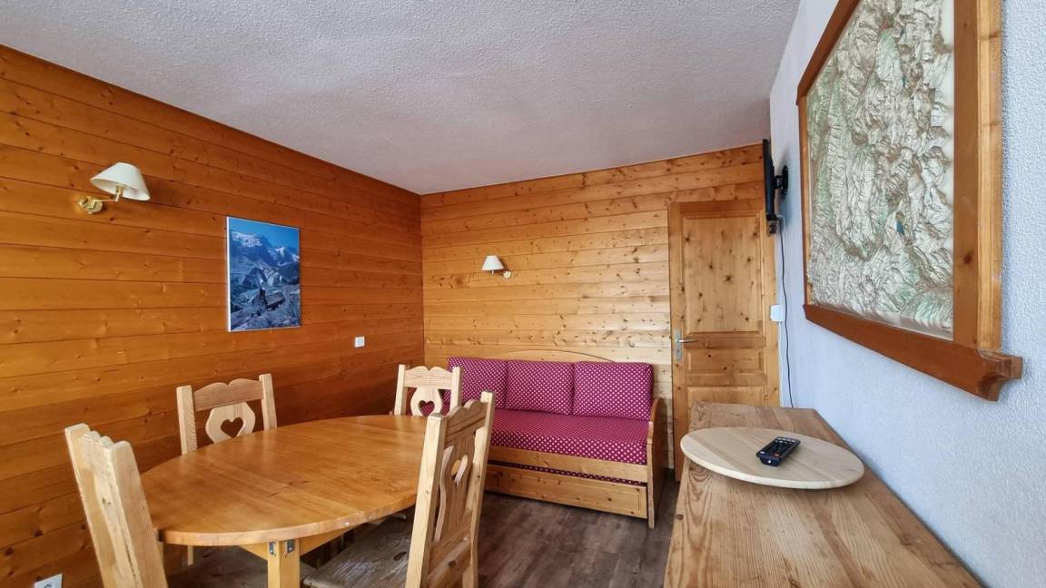 Die Residenz Le France befindet sich in der Station La Plagne in den französischen Nordalpen. Sie ist eine Station Skiern an den Füssen. Sie profitiert von einer außergewöhnlichen Stelle, in der Nähe des Kinderhorts, der Skischule und des Zentrums der Station. Direkter Zugang mit der Innenpassage. Vom Balkon ihrer Wohnung werden Sie eine schöne Sicht auf den Skispisten und dem Montblanc haben. Fläche von ungefähr 43 m². 4te Etage. Orientierung : Nord. Blick skipisten. Diele. Wohnzimmer mit Ausziehschlafcouch für 2 Personen, Einzelbett (90x190). Schlafzimmer mit 2 Einzelbetten (90x190). Schlafzimmer mit 2 Einzelbetten (90x190), Stockbett. Küche mit Wasserkocher, Kaffeemaschine, kleiner Backofen mit Mikrowellenfunktion, Toaster, Geschirrspülmaschine, Glaskeramikkochfelder, Kühlschrank. Badezimmer. Balkon. Die oberen Betten sind nicht für Kinder unter 6 Jahren geeignet.