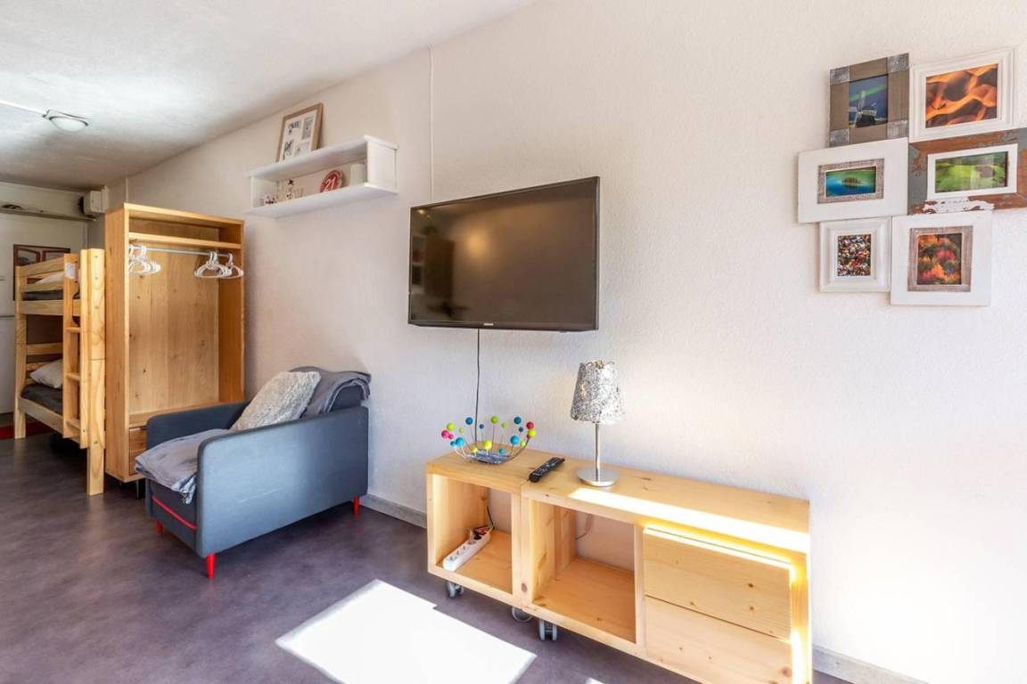Die Residenz Le France befindet sich in der Station La Plagne in den französischen Nordalpen. Sie ist eine Station Skiern an den Füssen. Sie profitiert von einer außergewöhnlichen Stelle, in der Nähe des Kinderhorts, der Skischule und des Zentrums der Station. Direkter Zugang mit der Innenpassage. Vom Balkon ihrer Wohnung werden Sie eine schöne Sicht auf den Skispisten und dem Montblanc haben. Fläche von ungefähr 25 m². 6te Etage. Orientierung : Süd. Blick skipisten. Diele. Wohnzimmer mit ausklappbares Wandbett, Stockbett. Küche mit Wasserkocher, Kaffeemaschine, kleiner Backofen mit Mikrowellenfunktion, Geschirrspülmaschine, Glaskeramikkochfelder, Kühlschrank. Badezimmer. WC. Balkon mit Tisch. Die oberen Betten sind nicht für Kinder unter 6 Jahren geeignet.