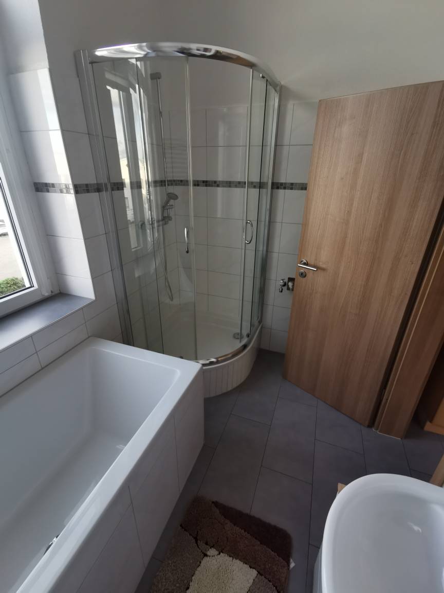 Die Wohnung ist mit einer zweckmäßig ausgestatteten Küche mit Geschirrspüler, Backofen mit Ceranfeld und einem Geschirrspüler ausgestattet. Im Bad befindet sich eine Dusche und eine Badewanne. Sollten Sie diese Wohnung beruflich nutzen, steht Ihnen ein Schreibtisch mit zusätzlichem Monitor zum Anschluss eines Laptops zu Verfügung.