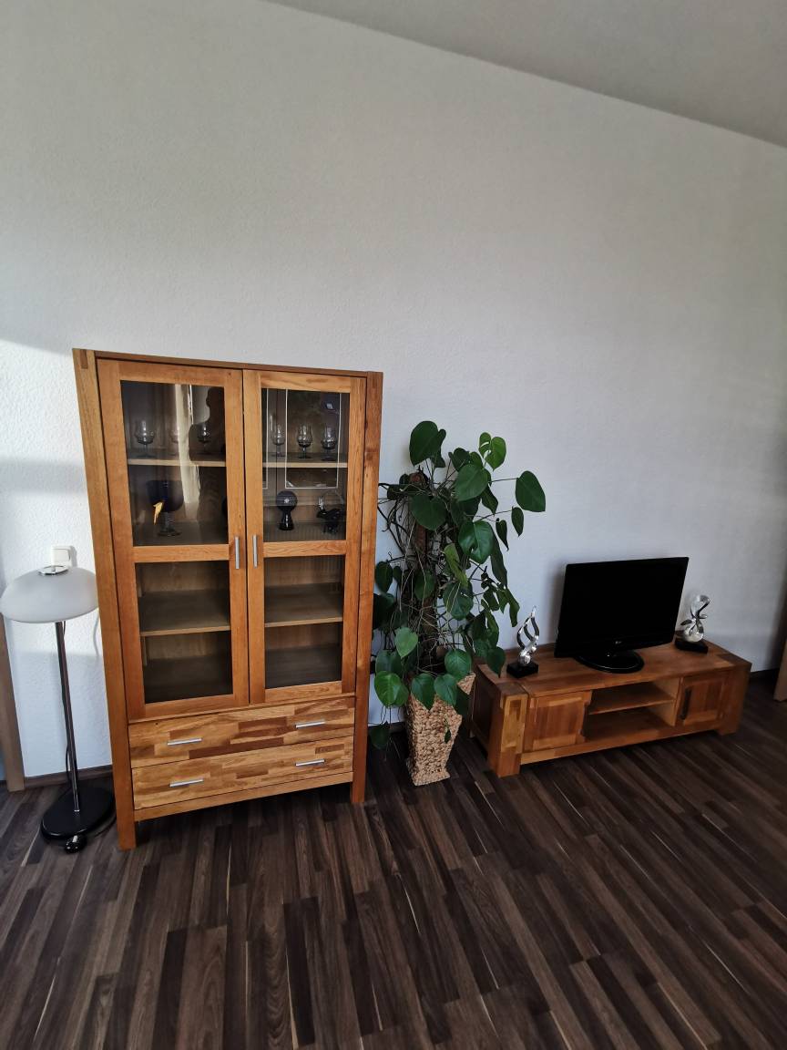 Gemütliche Ferienwohnung für 3 Erwachsene oder 2 Erwachsene und 2 Kinder. Die Wohnung verfügt über 1 Schlafzimmer mit wahlweise Doppelbett oder 2x Einzelbett sowie einem Schlafsofa im Wohnzimmer mit 1,2m Liegefläche.