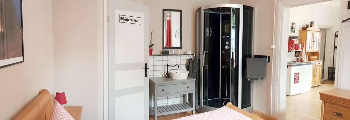 Mitten in der Landeshauptstadt türmt im Baustil einer normannischen Burg die "Wasserkunst". Im denkmalgerecht restaurierten Gebäude befinden sich neben der Loftwohnung des Gastgebers 2 liebevoll eingerichtete Ferienwohnungen(Otto und Wilhelm) in der südl. Haushälfte mit eigenem Zugang. Ein parkähnl. Garten lädt zum Grillen u. verweilen. PKW Stellplätze sowie eine Garage für Fahr- u. Motorräder stehen auf unserem gesicherten Grundstück zur Verfügung.