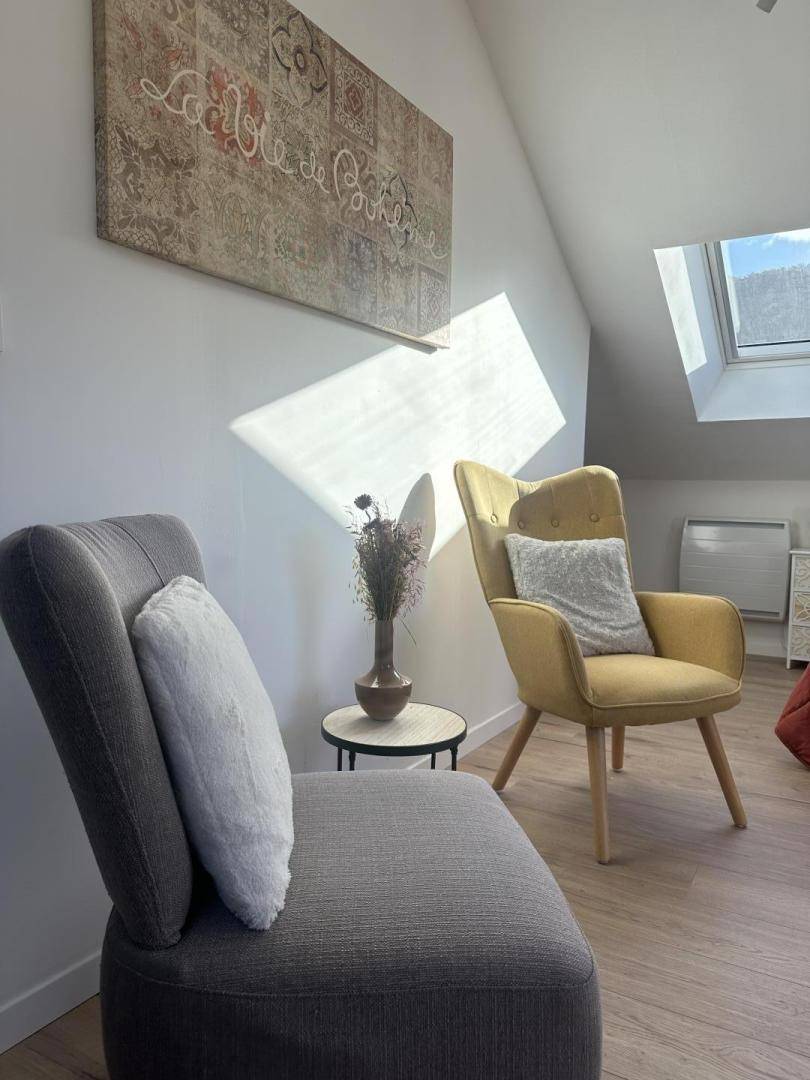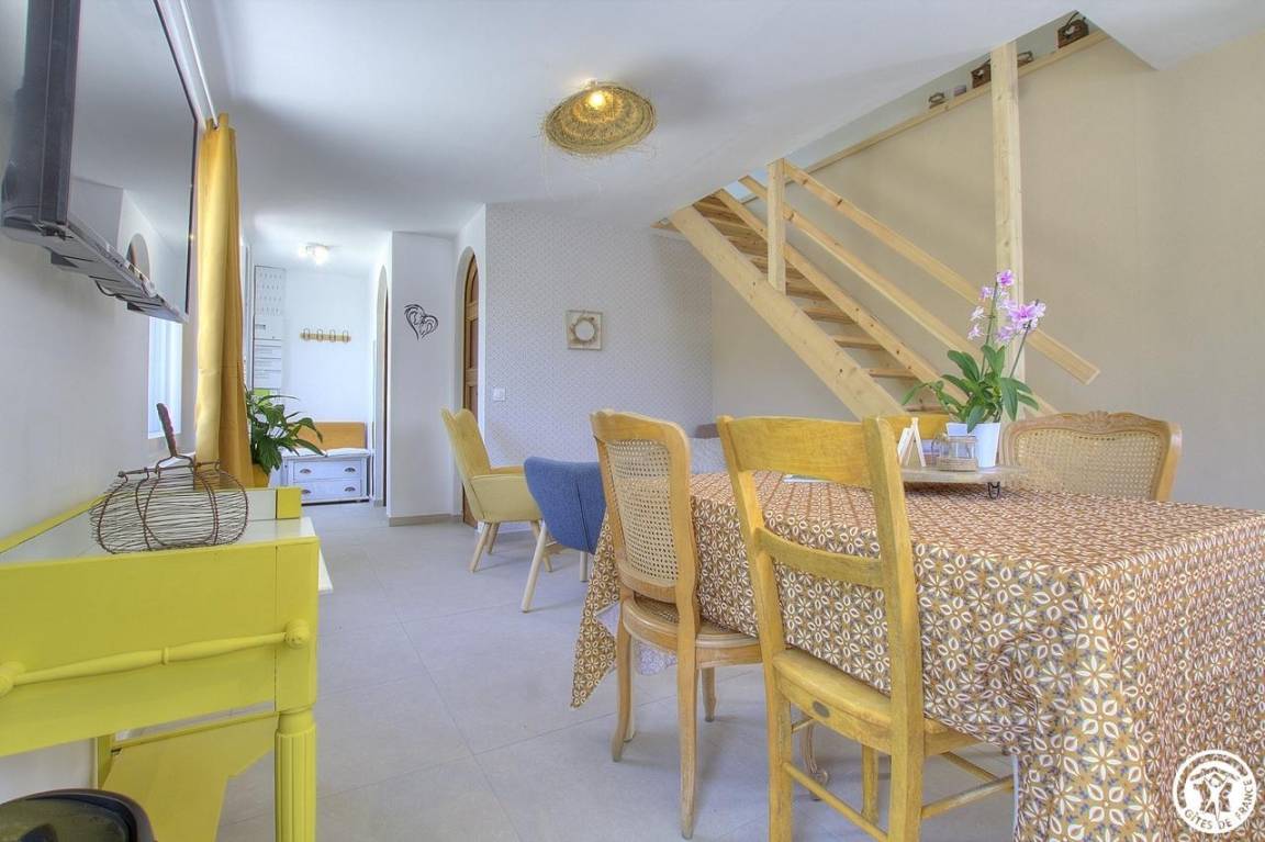 Die aktuelle Dekoration des Ferienhauses, seine warmen Farben, seine Helligkeit umhüllen Sie mit einem Gefühl des Wohlbefindens, sobald Sie durch die Haustür treten. Das Ferienhaus ist funktional und mit allem Komfort ausgestattet.
