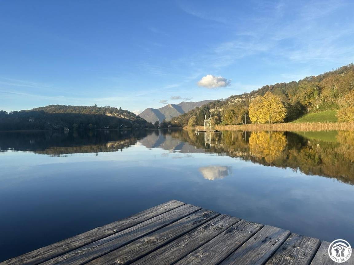 „Maison isolée divisée en 3 très bien rénovée et décorée avec tout le confort, au pied d'un agréable chemin prisé par les pêcheurs, qui fait le tour du lac Barterand. A faire: Baignades, vélo, randonnées, la dent du chat et son auberge, le puits des Tines, la superbe abbaye de Hautecombe, le lac du bourget, Aix les Bains et son magnifique casino, Chanaz, manger les glaces de Yenne...“