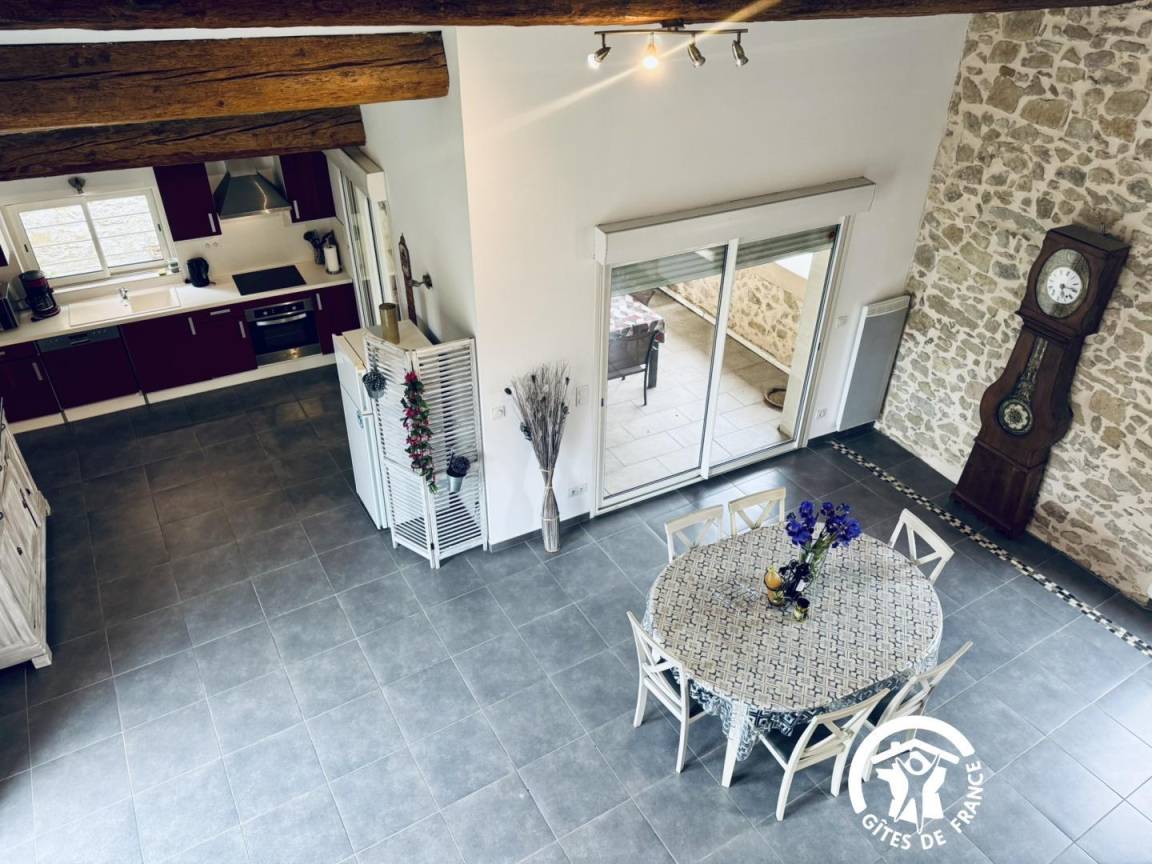 Die Gîte im Obergeschoss befindet sich im selben Innenhof wie das Haus der Eigentümer. Es ist über eine Außentreppe erreichbar, bietet Ihnen Platz und allen nötigen Komfort: