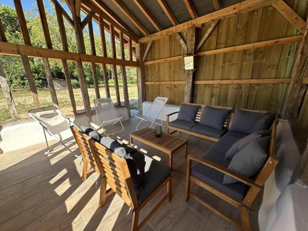 Genießen Sie die ländliche und waldreiche Umgebung rund um das Ferienhaus, die überdachte und offene Scheune mit Gartenmöbeln zum Entspannen und die überdachte Terrasse mit Gartenmöbeln und Grill.