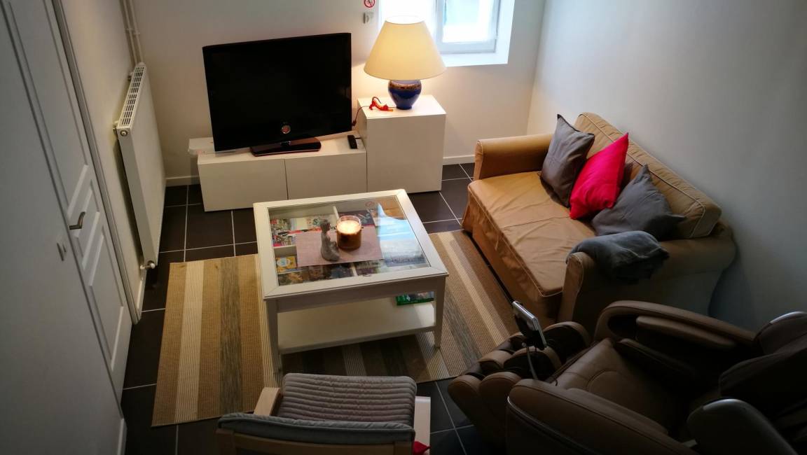 „Excellent séjour, bien situé pour nos visites, logement très bien équipé. Nous avons bcp apprécié le fauteuil massant.“