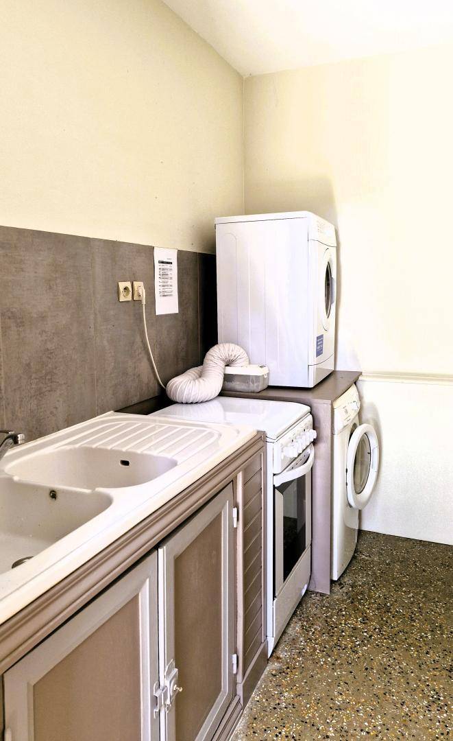 Im Erdgeschoss befindet sich eine von beiden Wohnungen gemeinsam genutzte Waschküche mit Waschmaschine und Trockner.
