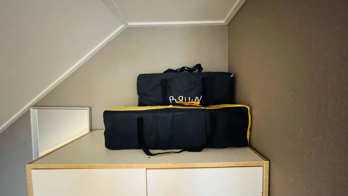 Hochstuhl, Bollerwagen, Kinderbetten, ein Babyreisebett, ein Treppengitter oben, Kinderbesteck und -geschirr sowie diverse Spielsachen und Kinderbücher sind vorhanden.