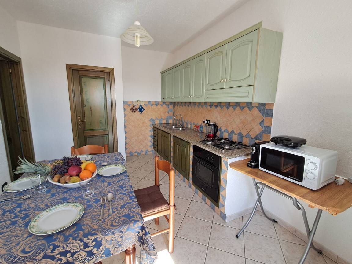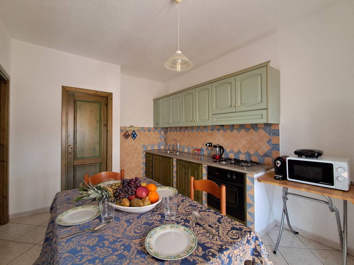 Wohnküche: gut ausgestattete Küche, Esstisch, Kühlschrank, Tiefkühler, Mikrowelle, Herd, Ofen, Italienische Kaffeemaschine, Sofa, WiFi Internet, Klimaanlage, TV, Ausgang auf die Veranda.