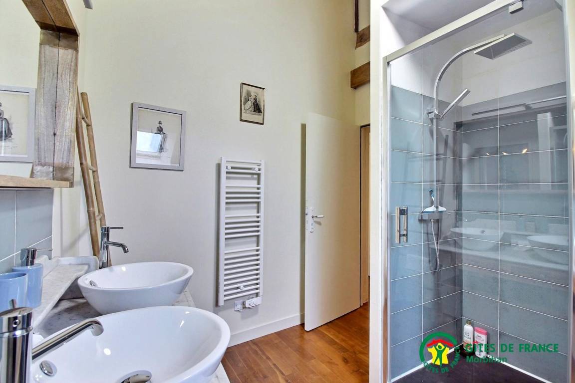 - Auf der 1. Etage: ein Zwischengeschoss mit 2 Ausziehbetten in 160 dient: 1 Schlafzimmer mit 1 Bett in 160, ein Duschbad, ein separates WC und ein letztes Schlafzimmer (1 Bett in 160) mit eigenem Duschbad und separatem WC privat. Die Waschmaschine befindet sich in der gemeinsamen Waschküche (Zugang von außen). Draußen genießen Sie eine private Terrasse und einen Garten (gemeinsam mit den Eigentümern). Private Parkplätze auf dem Grundstück. Gite neben dem Haus der Eigentümer, die 1 Gästezimmer anbieten.
