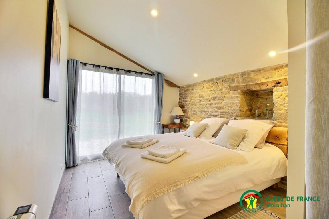 „We were delightfully welcomed back again to Ar-Roz this year by the wonderful Edith and Yann in our groups comprising two grandparents, two daughters, two son-in-laws and two babies. Again the space in and out is beautiful, superb quality, superbly comfortable, spacious and was perfect. WiFi greatly improved from last time. Provision of high chairs and other baby equipment was really helpful. Edith was helpful and sympathetic when our car broke down, suggesting good garages. Rochefort-En-Terre is surely one of the prettiest villages in Brittany, and there are several others too. Lovely countryside, away from the tourist crowds very welcome. Saved a fortune going through Gites de France instead of the usual booking agent. Can't wait to return hopefully next year. Thanks Edith and Yann!“