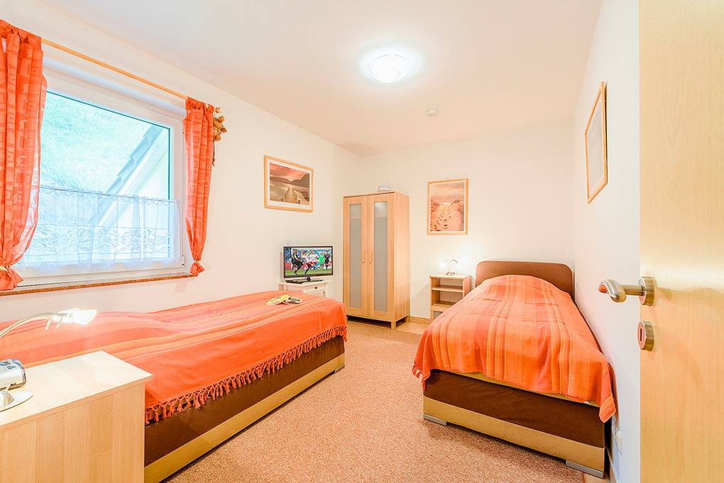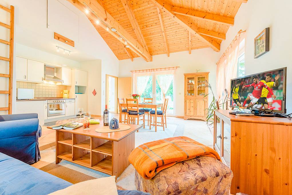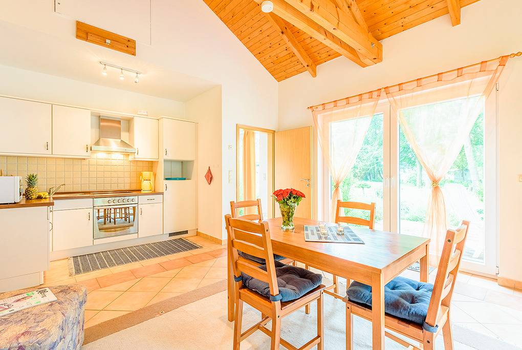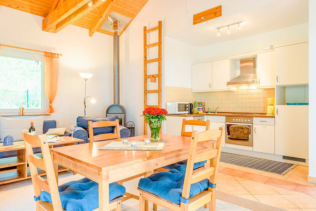 D 47.33 Ferienhaus 2-4 Pers.: 3-Zimmerhaushälfte mit 70 qm Wohnfläche. Wohn-/Essraum mit Kaminofen, Couchgarnitur, Sat-TV, Stereoanlage mit Radio-CD, Esstisch, gut ausgestatteter Küchenzeile (Backofen, Mikrowelle, Spülmaschine). Doppelzimmer. 2-Bettzimmer mit Sat-TV. Bad/WC.