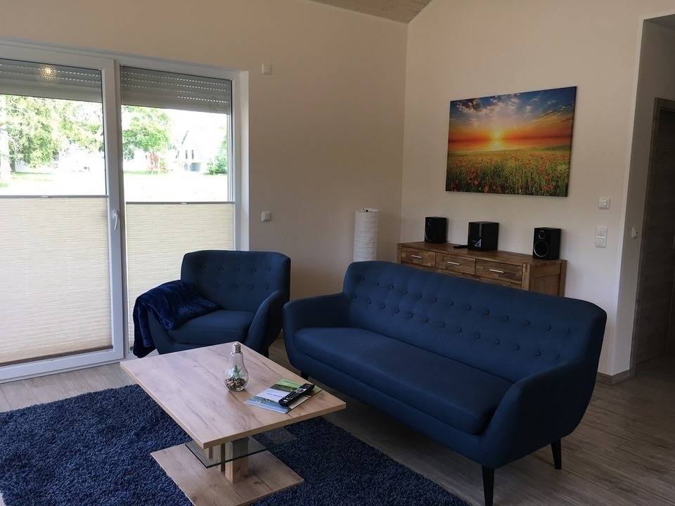 Der offene Wohn- und Essbereich mit Kamin lädt zu gemütlichen Stunden mit der Familie ein. Eine integrierte Küche bietet Ihnen viele nützliche Koch- und Küchenutensilien, sodass Sie auch im Urlaub auf nichts verzichten müssen.