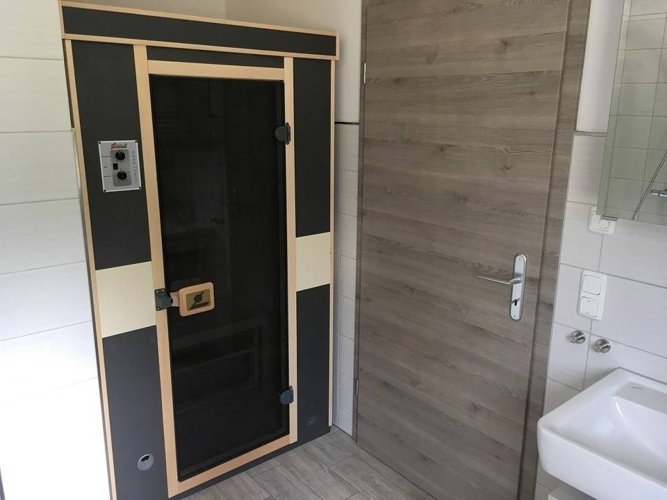 Weiterhin stehen Ihnen zwei Badezimmer mit Dusche zur Verfügung. Ein Bad ist zusätzlich mit einer Rotlichtkabine ausgestattet.