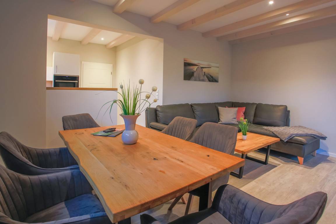 Die offene Küche ist hochwertig ausgestattet mit Induktionsherd, Mikrowelle, Spülmaschine, Kühl-/Gefrierschrank, ausreichend Geschirr und Kochtöpfen sowie vielen nützlichen Kochutensilien.