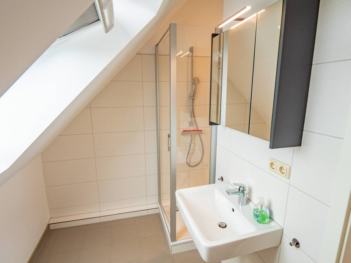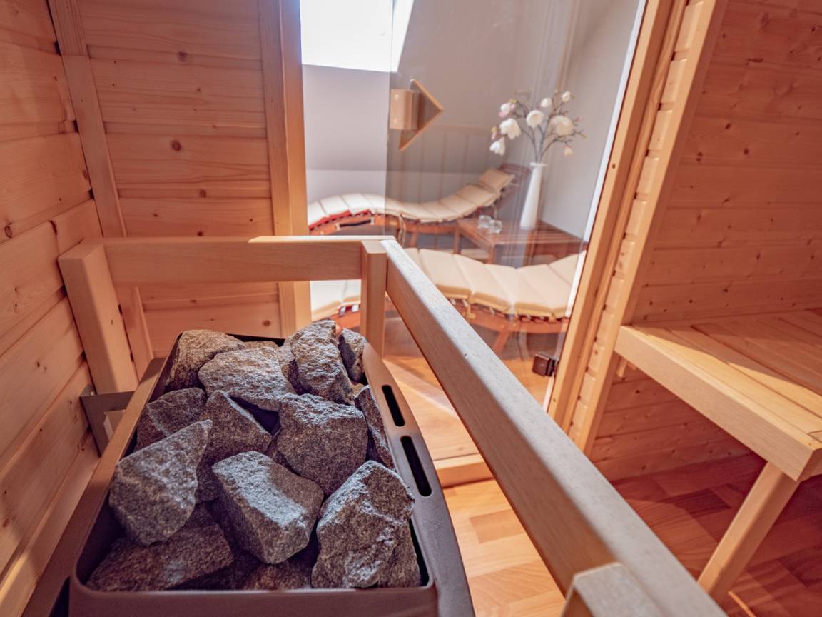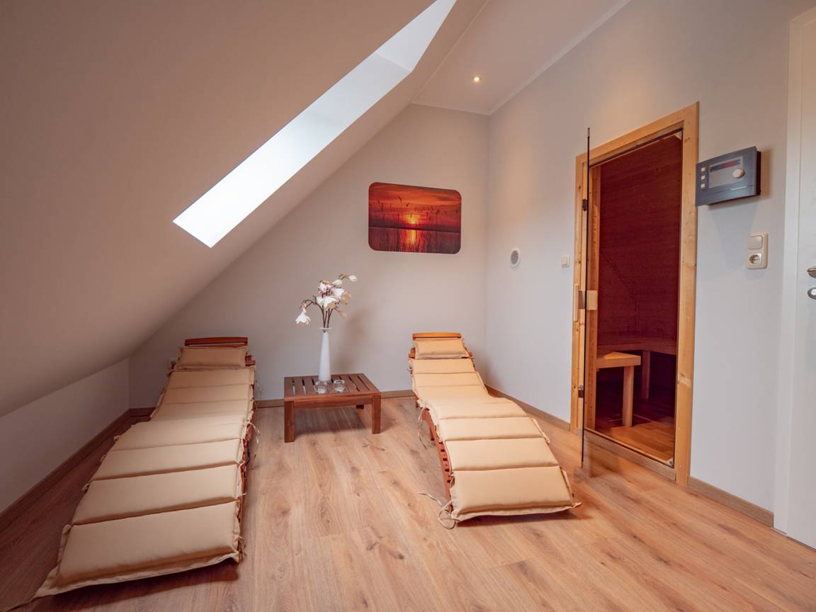 Im Dachgeschoss finden Sie eine Dampfsauna, die gerade in der kühlen Jahreszeit für entspannte Momente sorgt. Neben dem Ruhebereich gibt es für die Sauna noch ein Duschbad.
