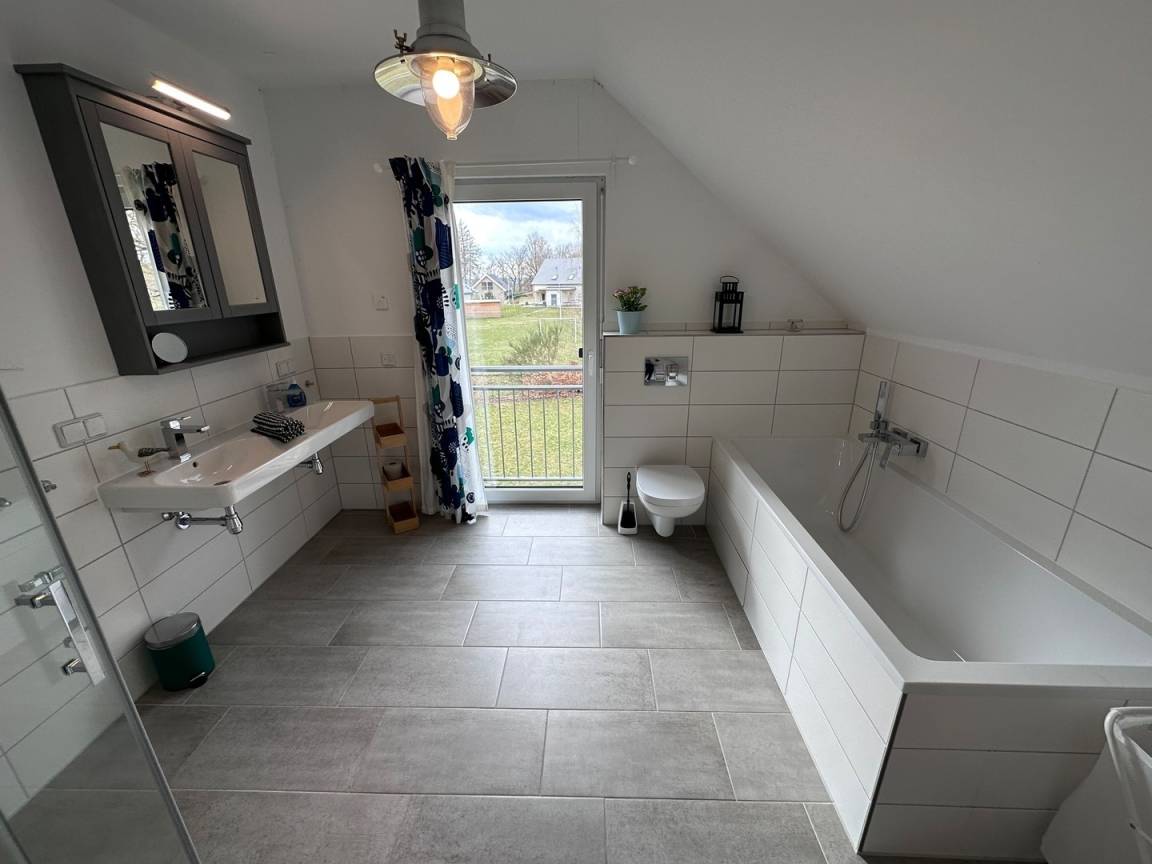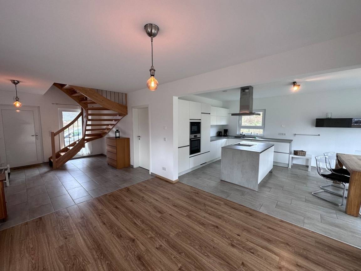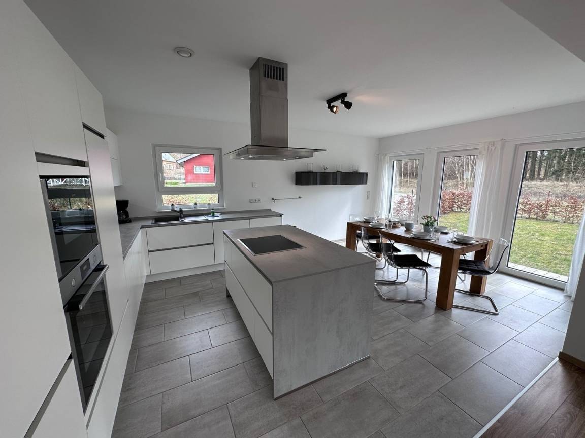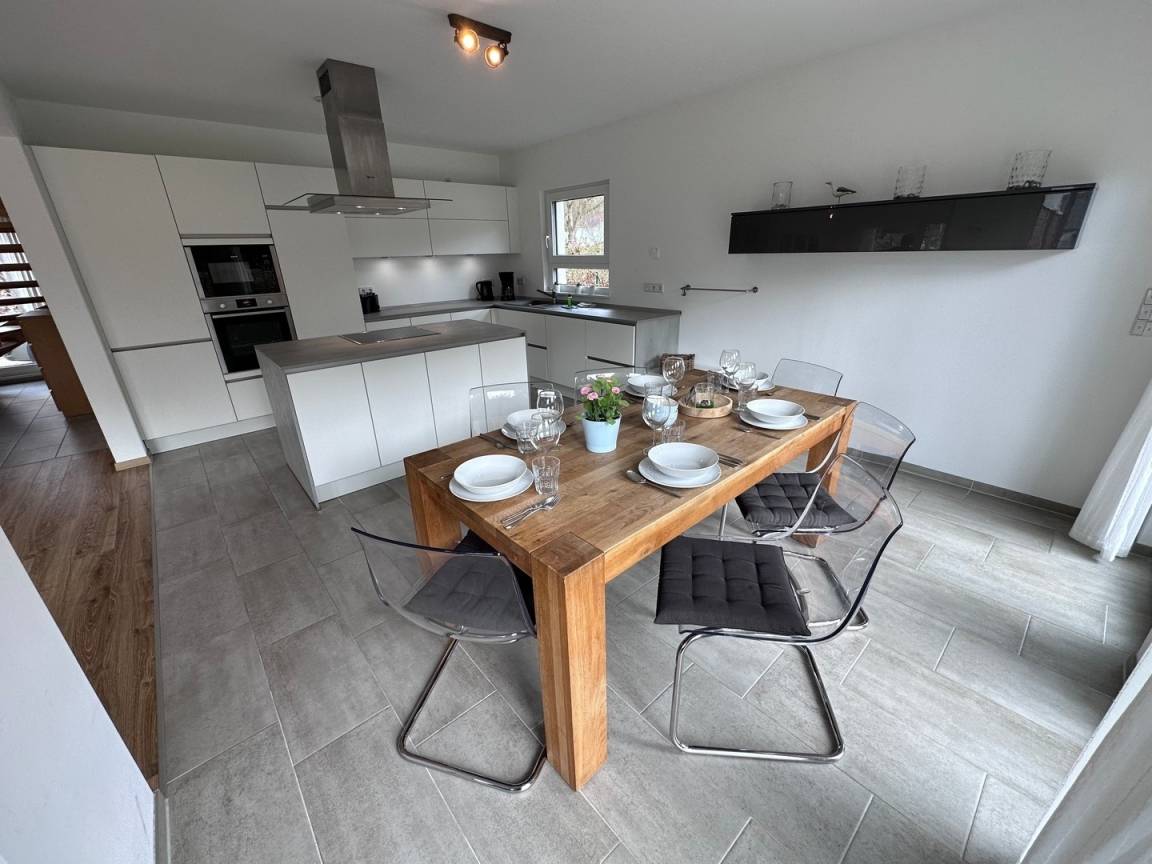 Entspannen Sie sich vor dem Flachbild-TV auf dem gemütlichen Sofa. Oder kreieren Sie als Hobbykoch in der integrierten, vollausgestatteten Küche Ihren Liebsten köstliche Mahlzeiten. Die Küche ist hochwertig ausgestattet mit Umluftherd, Kühlschrank mit Gefrierfach, 4-Zonen-Cerankochfeld, Geschirr, Gläser, Besteck und Kochtöpfen sowie vielen nützlichen Kochutensilien. Ein Esstisch für 8 Personen lädt zum gemütlichen Verweilen ein. Das Badezimmer im Erdgeschoss verfügt über einen Waschtisch und ein WC und im Obergeschoss findet der Gast eine Badewanne, eine ebenerdige Dusche, zwei Waschbecken und das WC.