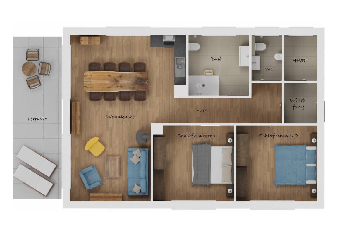 100 m² Ferienwohnung ∙ 2 Schlafzimmer ∙ 6 Gäste