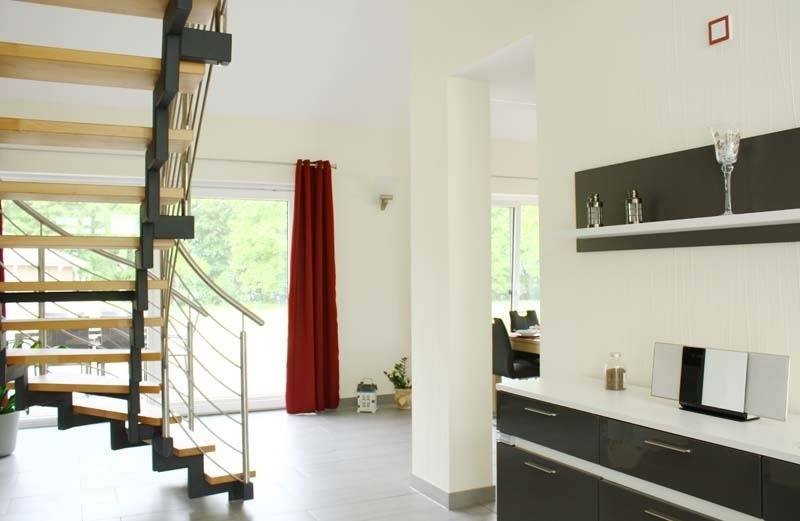 Ein lichtdurchfluteter offener Eingangs- und Wohnbereich mit direktem Zugang zur Terrasse sorgen für einen unverbauten Blick in die Natur, den Plauer See und das Gefühl von Freiheit und Ferne.