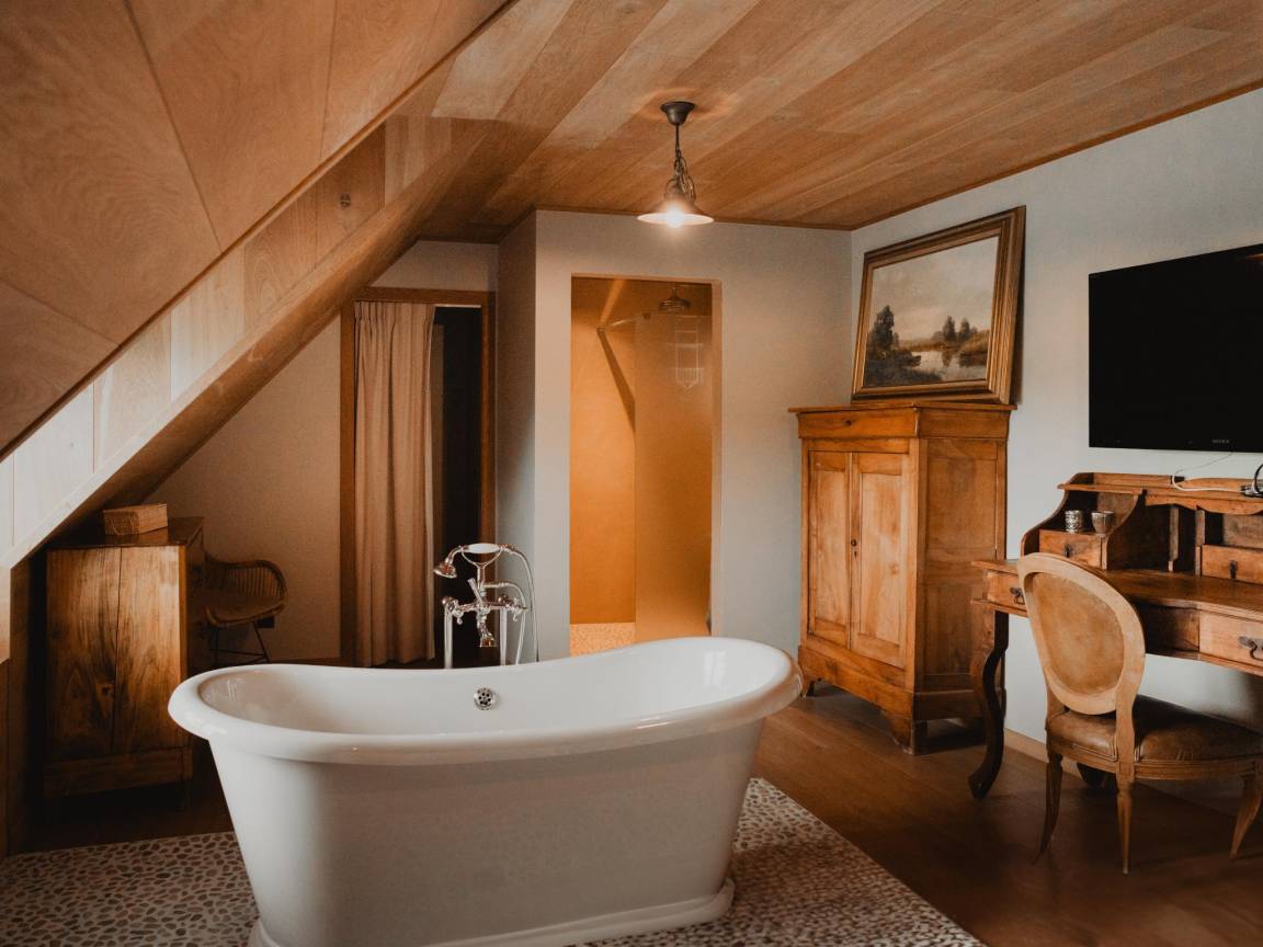 „Sehr schönes Haus. Es war gemütlich und angenehm, dort für ein Wochenende zu bleiben. Alles war vorhanden. Jedes Zimmer hat ein eigenes Bad und eine eigene Toilette, was wirklich ein Pluspunkt ist. Allerdings gibt es keine Türen. Auch keine Vorhänge, und genau das haben wir vermisst. Leider hatte der Gastgeber auch keine Zeit zu erklären, wie der Whirlpool, die Sauna oder der Ofen funktioniert.... Das führte dazu, dass wir Zeit verloren, um herauszufinden, wie alles funktioniert.“