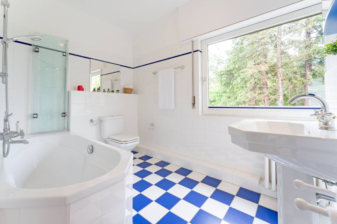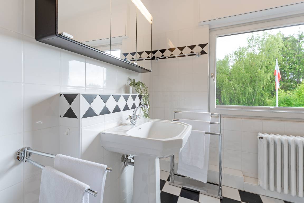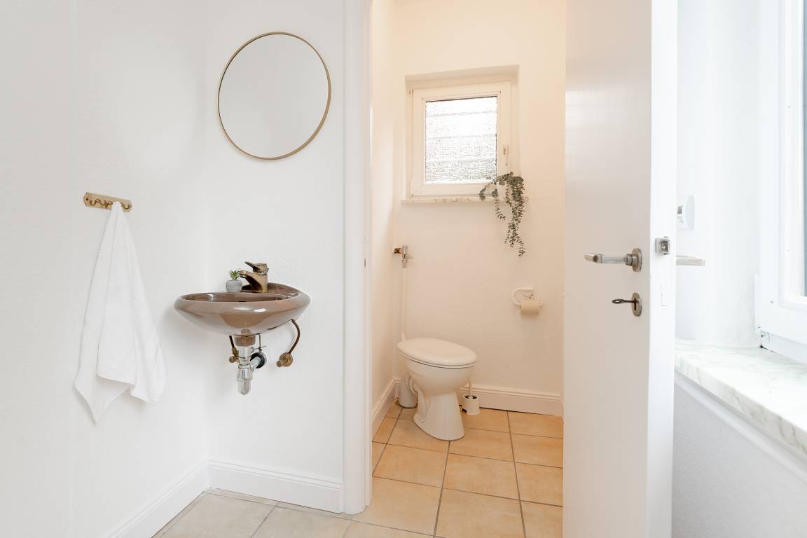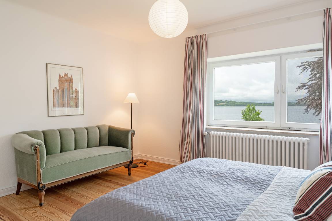 Der helle Wohnbereich mit Kaminofen lädt zu entspannten Abenden ein. Großzügige Fensterfronten eröffnen den Blick ins Grüne und auf den nahegelegenen See. Direkt angrenzend genießen Sie auf der nach Westen ausgerichteten Terrasse sonnige Nachmittage oder lauschige Abende. Gartenmöbel, ein Sonnenschirm und ein Strandkorb stehen Ihnen zur Verfügung. Die separate Küche ist hochwertig ausgestattet: Ceranfeld, Backofen, Mikrowelle, extra Gefrierschrank, Kühlschrank, Kaffeemaschine, Toaster und Wasserkocher lassen keine Wünsche offen. Gemeinsam speisen Sie in einem separaten Essbereich mit Ausblick auf das Seegeschehen. Fünf Schlafzimmer bieten Platz für bis zu acht Personen und sind gemütlich und stilvoll eingerichtet. Zwei Bäder im Obergeschoss sorgen für Komfort: eines ist mit einer Dusche, das andere mit einer Badewanne ausgestattet. Zwei Gäste-WCs im Erdgeschoss runden das Angebot ab.