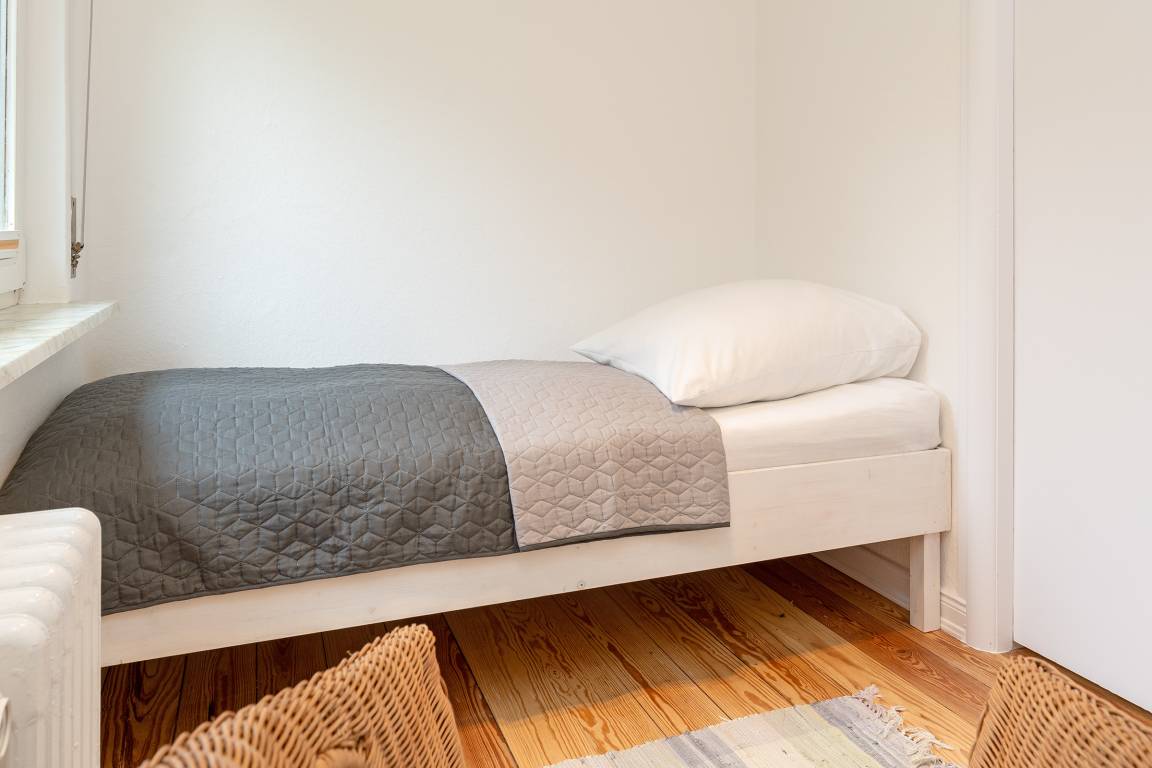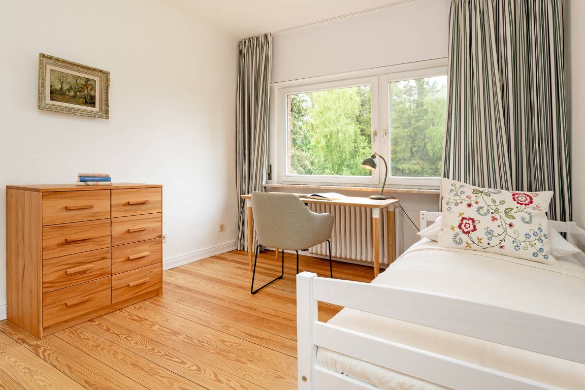 Schlafzimmer 4: Einzelbett (90x200 cm), Kommode, Verdunklungsmöglichkeit: Rollladen und Vorhänge
