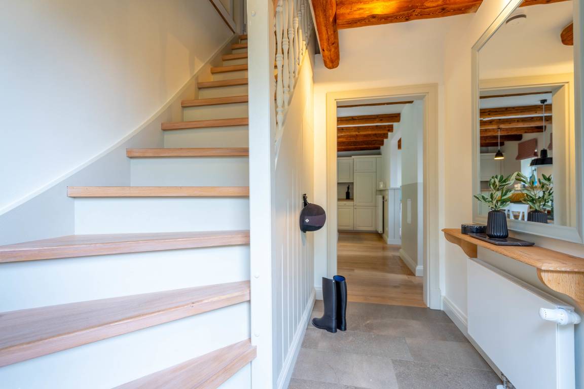 Die beiden charmanten Backsteinhäuser mit ihren großzügigen, stilvoll eingerichteten Wohnungen liegen fußläufig (800m) und in Blicknähe des Hotels – auf einer kleinen Anhöhe mit traumhaftem Ausblick über grüne Wiesen und das angrenzende Prinzenholz. Über einen idyllischen Reit- und Wanderweg erreichen Sie das Hotel Gut Immenhof in wenigen Minuten.
