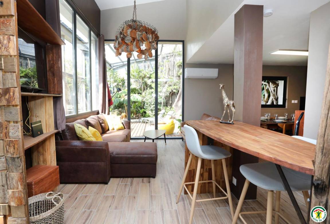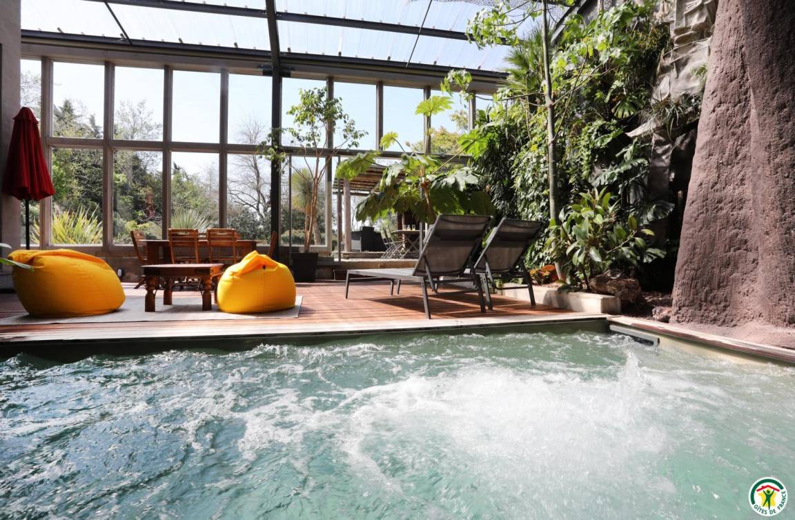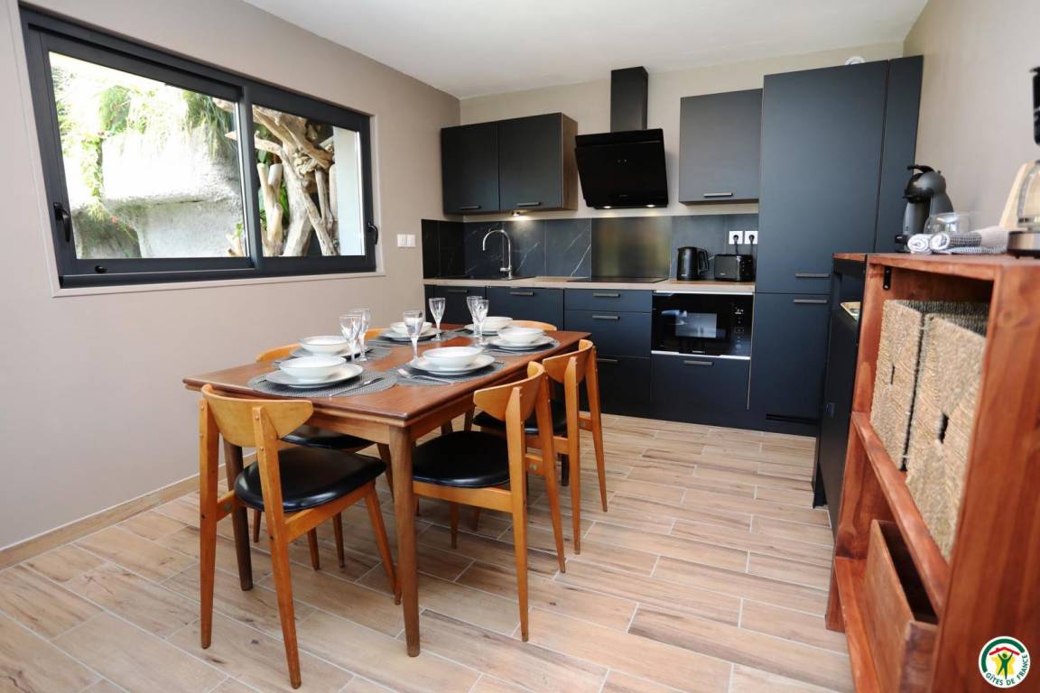 „Gîte confortable, bien équipé, propre, au calme, avec un parking sécurisé. Le jardin extérieur avec sa piscine est tout à fait magnifique et la serre tropicale avec sa piscine intérieure chauffée à 30 degrés est bien agréable pour se détendre. Très bon accueil du propriétaire et bravo à lui pour la conception de ce lieu original.“