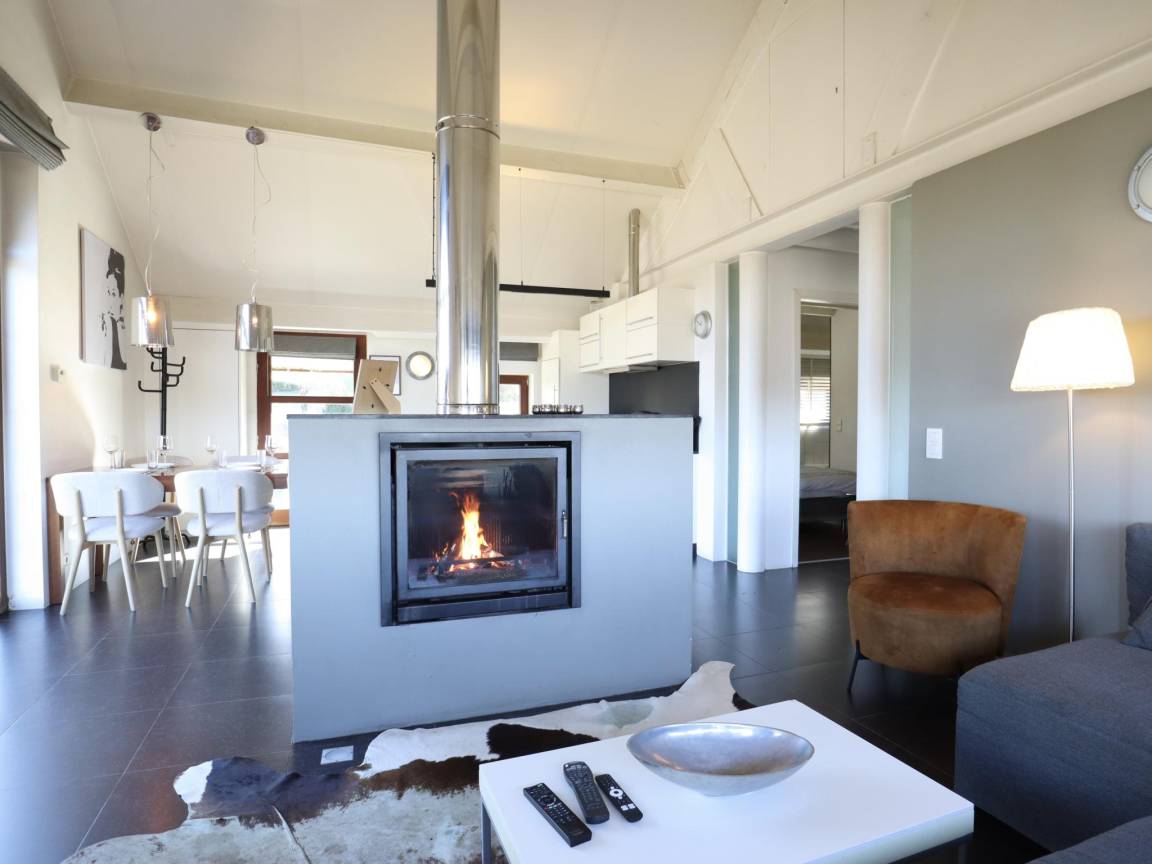 Layout : Parterre: Wohnzimmer mit TV, Kamin , offene Küche mit Kochplatte(4 Kochplatten, Ceranfeld), Wasserkocher, Kaffeemaschine(Filter), Backofen, Mikrowelle, Geschirrspüler, Kühl-/Gefrierkombination , Schlafzimmer mit Badezimmer mit Doppelbett, Wellness Badewanne, Dusche , Schlafzimmer mit Badezimmer mit Doppelbett, Badewanne, Dusche , Saunaraum mit Sauna , Toilette
