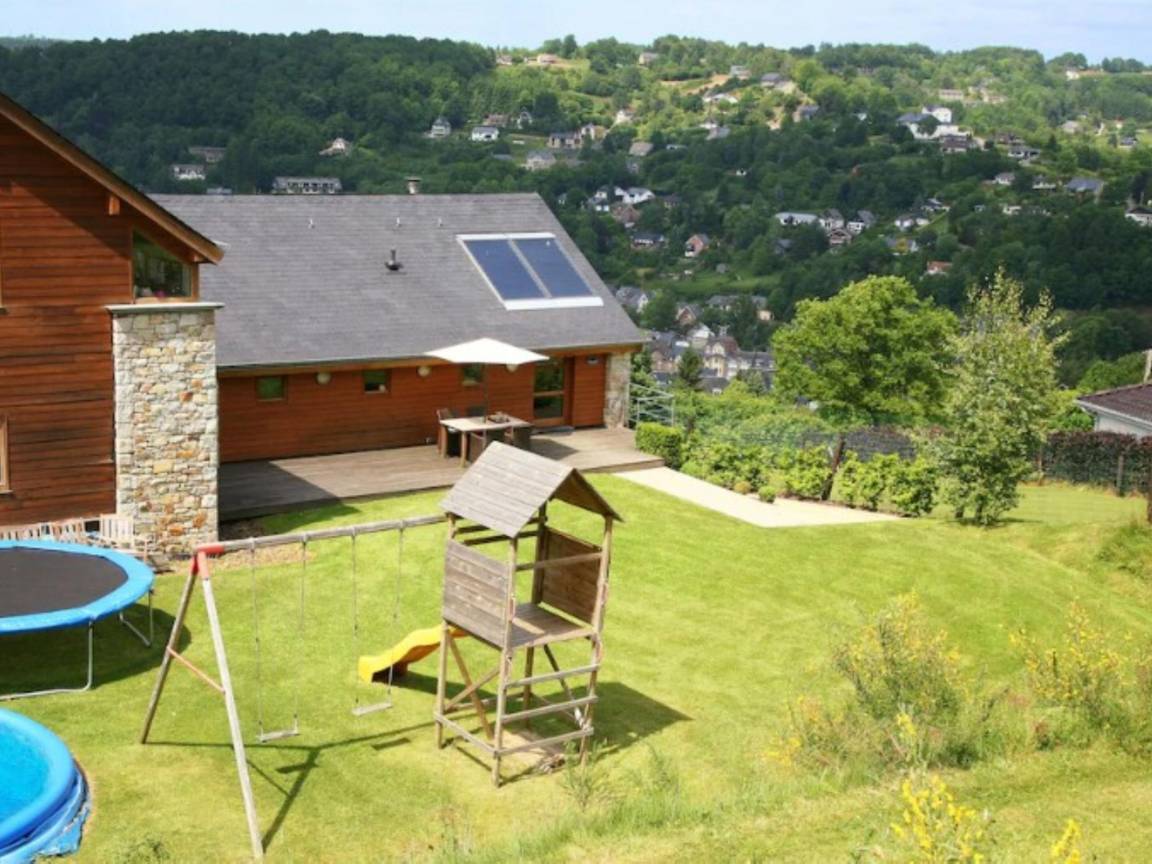 Hausbeschreibung : Mit einem atemberaubenden Blick über Malmédy und weniger als 2 km vom Stadtzentrum entfernt, ist dieses schöne Ferienhaus ideal für einen Familienurlaub. Es verfügt über ein herrliches Wohnzimmer mit Kassettenkamin, eine voll ausgestattete Küche, eine Essecke und eine ruhige Lage am Hang. Außerdem gibt es einen Whirlpool, eine separate Sauna und eine große 36 m² große Terrasse mit Gartenmöbeln, Grill und Spielen, ideal zum Entspannen oder um mit den Kindern die Natur zu genießen