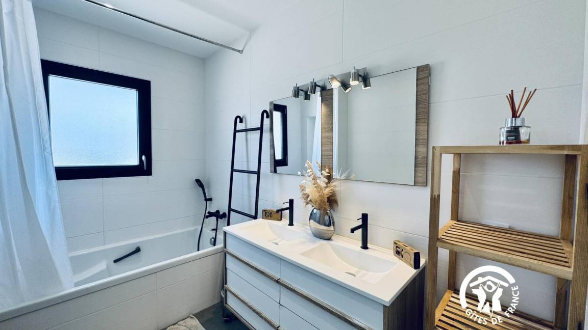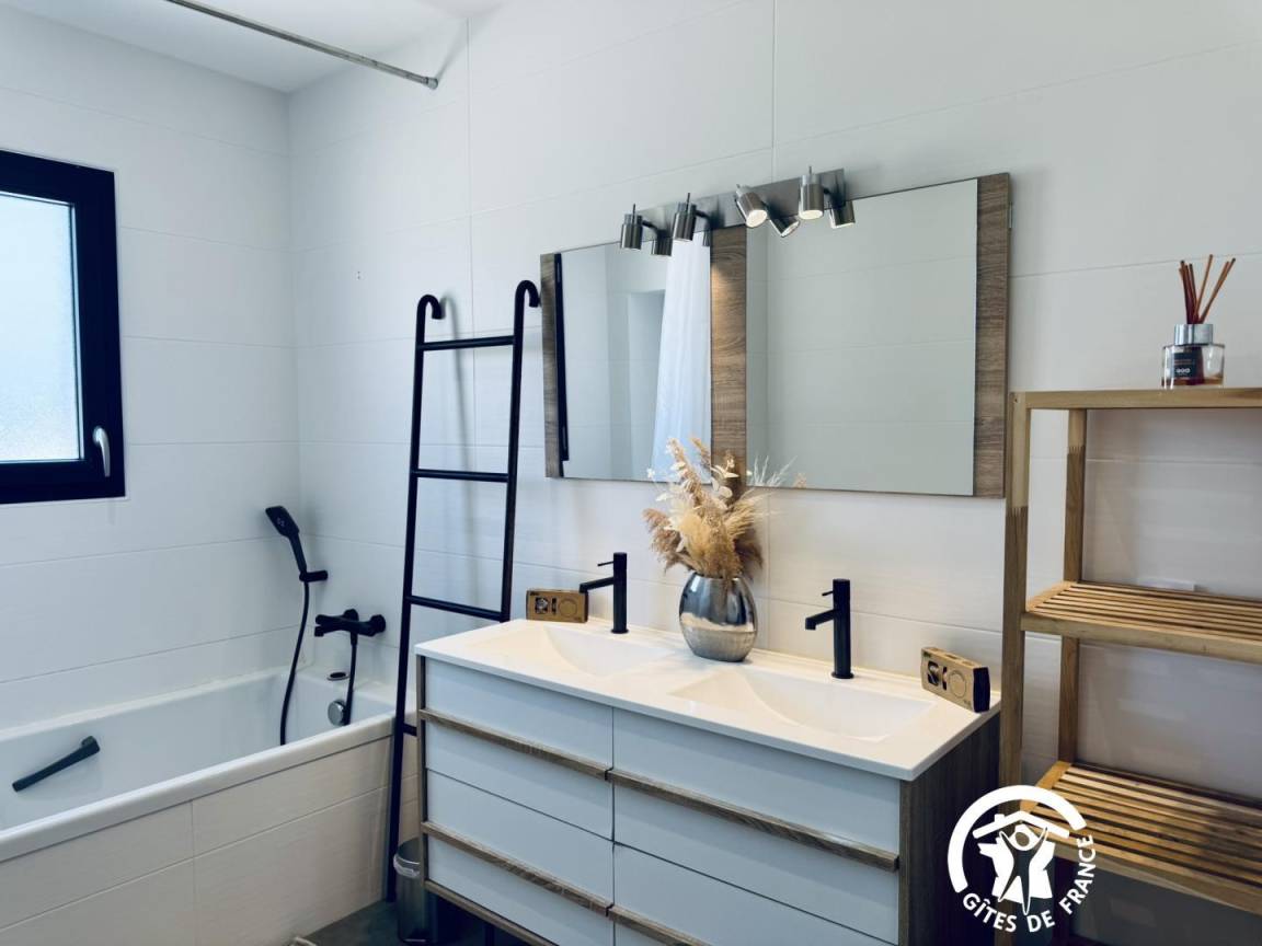 _Ein Badezimmer mit Badewanne und Doppelwaschbecken,