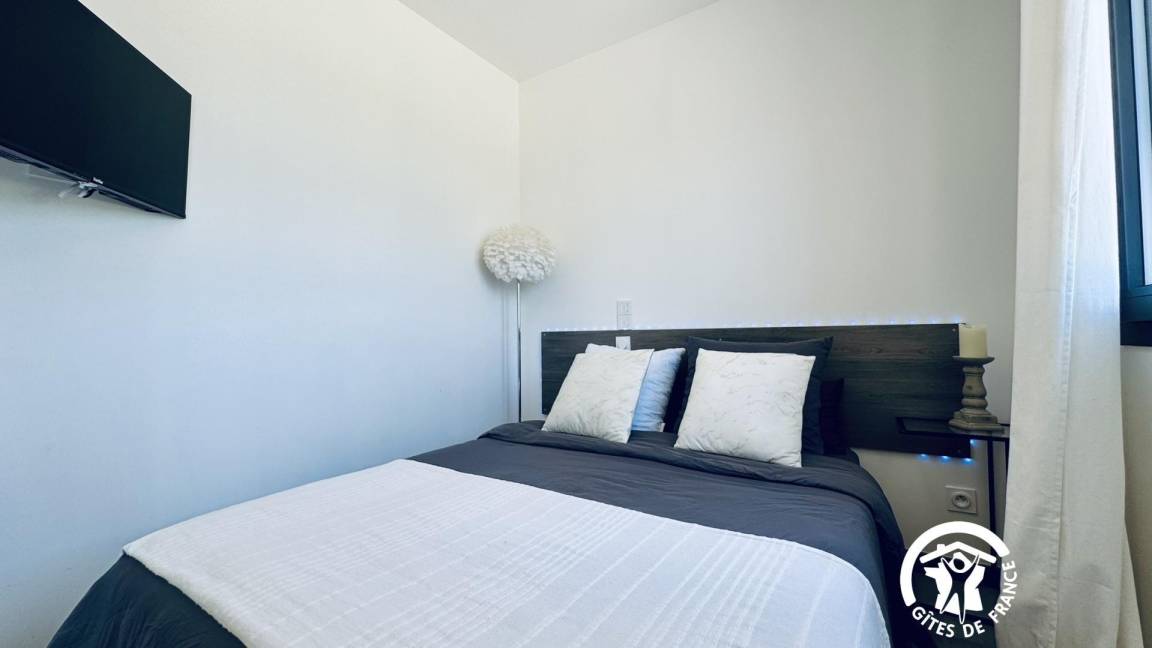 _ Zwei Schlafzimmer mit jeweils einem 140 cm breiten Bett und einem Fernseher.