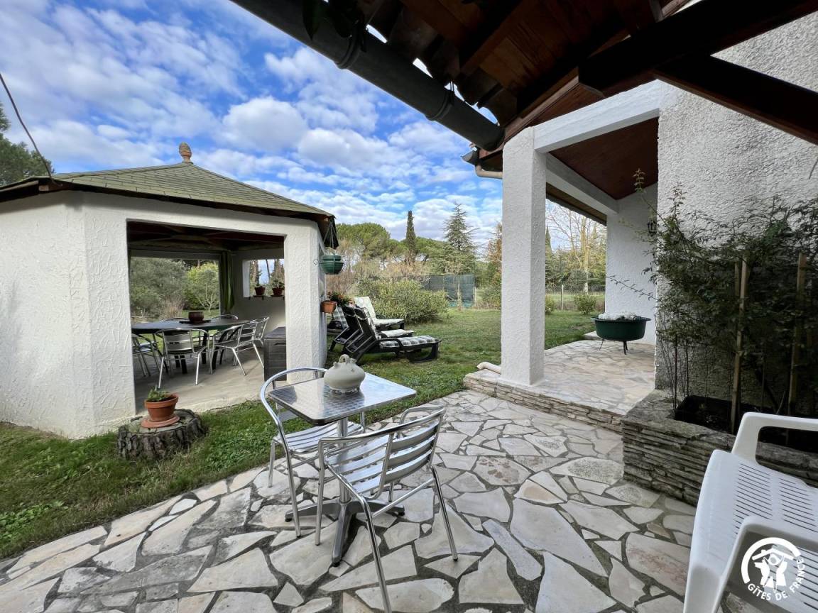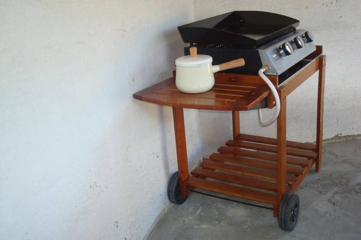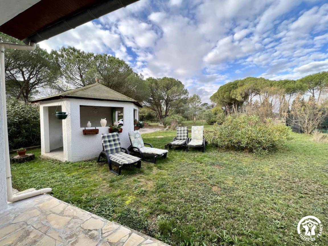„The property was situated in a quiet area with pine trees and plenty of parking. The outside summer house was ideal to sit under after a hot day of travelling. Plenty of outdoor furniture. Nice kitchen with good facilities and easy access to a barbeque at the rear. Unfortunately not overlooking the garden area but an enclosed courtyard. Our only gripe was the internet facility which wasnt always up to speed plus the fact that to get to the lovely property one has to pass by a neighbors property that looks like a junk yard. Good location for visiting wine farms..“