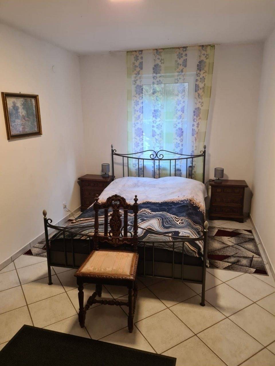 Die Doppelhaushälfte steht komplett oberirisch. Daher ist die Wohnung über 10 Stufen von der Strassenebene zu erreichen. Die Wohnung selbst ist ebenerdig ohne Stufen und besteht aus Schlafzimmer Bad, Küche mit Essbereich und geräumigem Wohnzimmer mit Fernseher und WLAN.