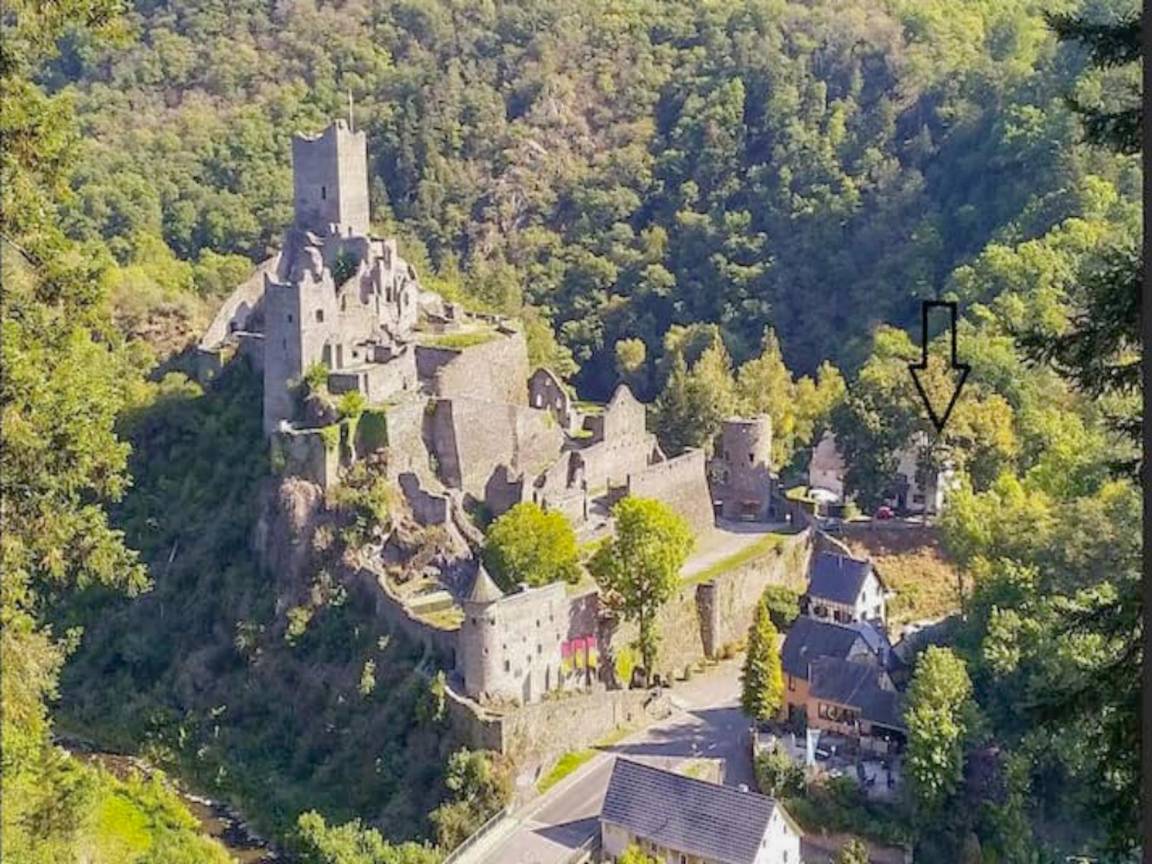 Hausbeschreibung : Der Kurort Manderscheid ist vielen Eifelliebhabern gut bekannt für sein gemütliches Zentrum, seine Lage inmitten der Wälder und in der Nähe der berühmten Vulkanseen. Und wegen der 2 Burgen. Dieses besondere Ferienhaus liegt einzigartig am Fuße der größten Burg. Das charaktervolle Haus hat eine reiche Geschichte. Heute ist es ein gemütliches und modernes Ferienhaus mit 5 Schlafzimmern, 2 Badezimmern, einem gemütlichen offenen Wohnzimmer und einer schönen geschützte Terrasse